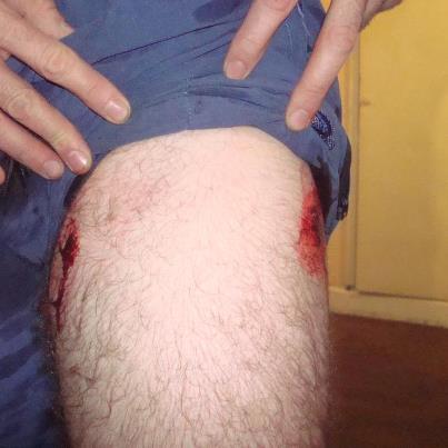 (Por La Retaguardia) Horas después de la salvaje represión, el jefe de gobierno de la ciudad declaró: «nunca vi artistas con facas ni bombas molotov». Nosotros nunca vimos balas de goma que perforen piernas, haciendo orificios de entrada y de salida, como las que vimos en las imágenes de las heridas que sufrió El Polaco, integrante del colectivo DTL! y de la Red Nacional de Medios Alternativos (RNMA). También fueron atendidos en los hospitales Argerich y Durand de esta ciudad Esteban Ruffa, miembro de Anred y la RNMA, y Mario Fumaroni de la Bilbioteca Popular Los Libros de la Esquina, y los médicos confirmaron que ambos fueron heridos con balas de plomo. A Mario pudieron quitarle el proyectil, Esteban todavía lo tiene incrustado cerca de la tibia.