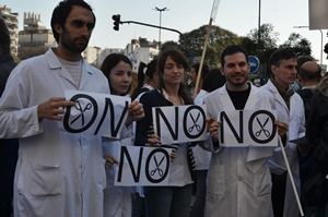 Bajo la consigna “Los recortes de la salud MATAN”, más de cinco mil profesionales de la salud médicos y no médicos se movilizaron por el centro porteño, en repudio a los descuentos efectuados en los salarios de quince mil trabajadores, que retrotraen sus sueldos a las mismas cifras que en agosto del año pasado.