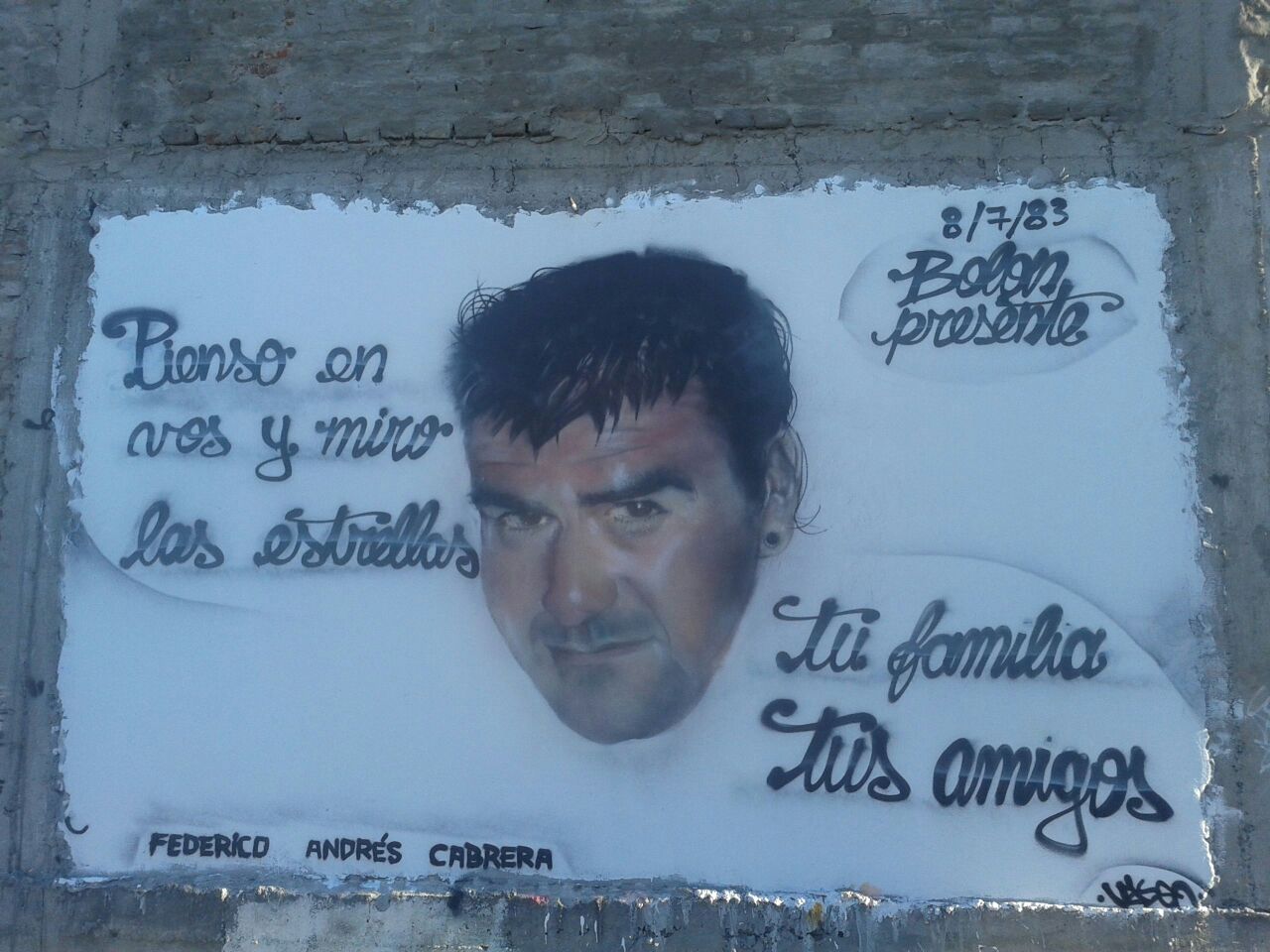 La vida de Federico Cabrera Ruiz dio un nuevo giro a mediados de enero de este año. Así lo relató Pablo Pimentel: “él iba caminando por su barrio y vio cómo un hombre le pegaba a una mujer, él veía peligrar la vida de esa mujer porque la tenía en el piso pegándole trompadas. ¿Nosotros qué hacemos si vemos una cosa así? ¿Nos metemos? Sí, y él se metió, y le dijo ‘pará, la vas a matar’. Esa persona era un delincuente, un narcotraficante amparado por sectores policiales, y la mujer misma que estaba sangrando le dijo ‘eh, vos, gato, qué te metés, es un problema nuestro’. Entonces Federico me llamó indignado, diciéndome que justo le había pasado esto con un delincuente pesado, ¿qué hacía? Le dijimos que fuera a denunciar porque es un hecho que evidentemente es complejo, por supuesto que cuando él denunció, ese tipo también fue a hacer la denuncia diciendo que se había metido, que le había querido pegar. Esto le significó a Federico que lo empezaran a amenazar de muerte. Fuimos a la fiscalía general a hacer la denuncia porque esta persona tenía un amparo de parte de algún miembro de la comisaría de Tablada. Se hizo la denuncia, pedimos que se investigue, volvimos a ir, hasta que el 14 de mayo Federico regresaba a su casa de trabajar con su moto, paró un coche y le dispararon 11 tiros de los cuales 5 impactaron en su cuerpo, y cayó en el piso. Lo mataron como un perro, y lo mató el tipo este que justamente le estaba pegando a su mujer y Federico tuvo el coraje y las pelotas para decirle que no le pegara más, eso le costó la vida pero también le costó la vida esta policía corrupta que en lugar de respetarlo en su cambio de vida lo seguía jorobando para que robara para ellos, y él tuvo el coraje de negarse, de denunciarlo, y esta es su vida”.