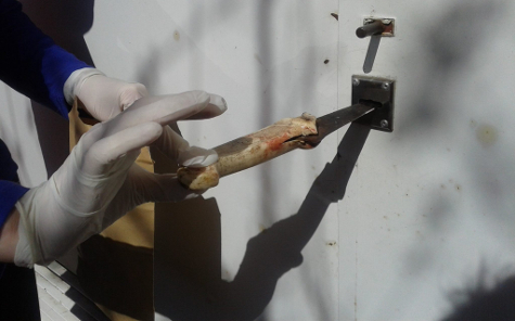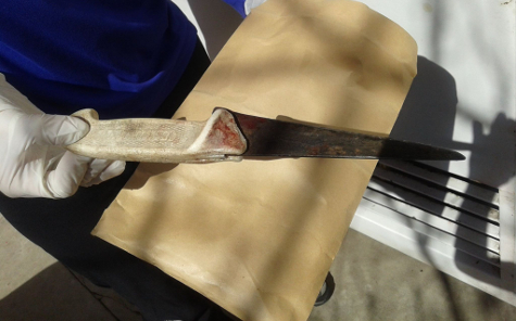 | El cuchillo con sangre fue dejado en la puerta de la casa de Creimer. |