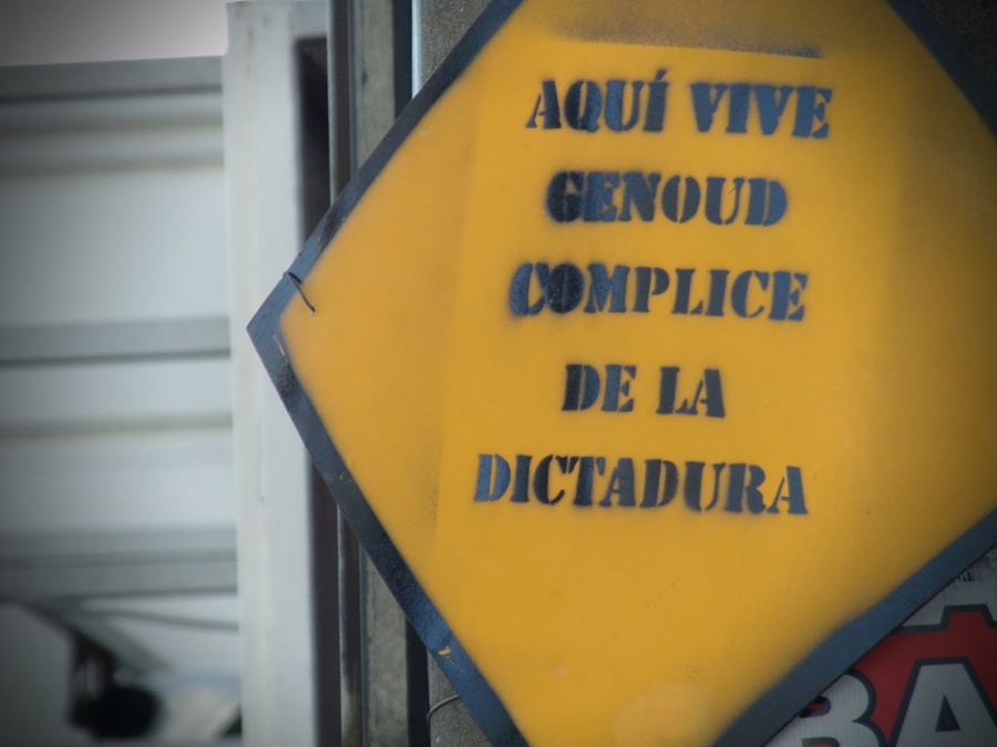 “El escrache se hizo porque todos los años nos ponemos una actividad con una consigna. Este año fue `Si no hay justicia, hay escrache’, ya que evidentemente nosotros no estamos teniendo justicia como nosotros queremos, porque todavía en Varela siguen impunes todos los que fueron, participaron o colaboraron porque caminan normal y libremente por Florencio Varela, nadie los llama a testificar, ni les preguntan si es cierto o no lo que nosotros estamos diciendo. Lo que nosotros decimos lo tenemos comprobado y tenemos las pruebas, no es que hablamos porque se nos ocurre, tenemos las pruebas de todas las palabras que decimos. De él (Genoud) pensamos que tuvo una gran participación en la época de la dictadura en el municipio de Florencio Varela, fue el que hizo hacer el código de faltas, fue miembro de una comisión de homenaje y festejo que estaba dentro del ámbito del municipio y en la época de la dictadura, o sea que para nosotros colaboró”,