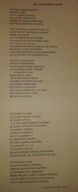 Fragmento de “De Lucía para Lucho” de Plutarco Schaller, Penal de La Plata 1979.