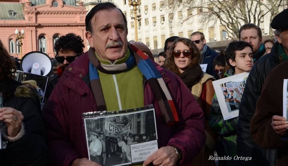 ‘Cachito: estás presente con todos y todas nosotros para siempre. En esta plaza y donde estemos. Como persona, como militante, como testigo del horror. No olvidaste nunca a tus compañeros y compañeras que quedaron soterrados en el infierno de los campos del terror. Fuiste ético y solidario, transparente. Estuviste siempre donde la injusticia requería tu presencia. Hijo, nieto, hermano, sos el imprescindible. Desde esta plaza te doy la mano para seguir caminando juntos. Hasta la victoria siempre, Cachito. Un abrazo. Nora’