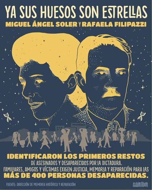«En resumen, encontramos 15 cuerpos en la Agrupación Especializada y están en proceso de estudios genéticos del Equipo Argentino de Antropología Forense en Córdoba y estamos esperando resultados. El cuerpo que habíamos hallado en diciembre de 2009 y exhumado en enero de 2010 era el papá de Jorge, Miguel Ángel Soler», informó, y agregó: «Y el que habíamos encontrado y exhumado en marzo de 2013 resultó ser Rafaela Fillipatzzi, ciudadana nacida en Italia, naturalizada Argentina, secuestrada en Uruguay y asesinada en Paraguay. Típico operativo del Plan Cóndor«.