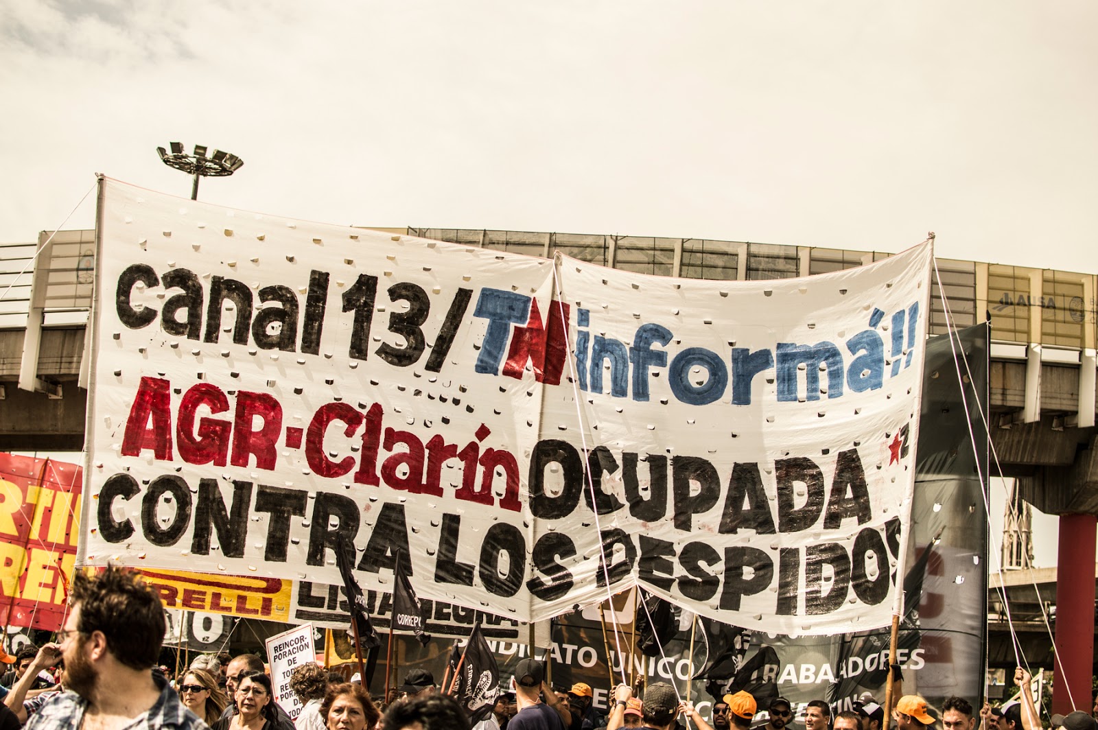 Rubén Schofrin, integrante del Sindicato de Prensa de Buenos Aires (SiPreBA), agregó: «En el día de hoy se consuma un hecho histórico, los compañeros de AGR, con organizaciones y sindicatos hemos bloqueado la autopista frente al ventanal de Canal 13 y TN. Esta es una jornada histórica, hay miles de trabajadores y es una acción que va a continuar hasta que la patronal vuelva para atrás y reincorpore a los 380 trabajadores. El objetivo es destruir al convenio colectivo, bajar salarios y que la crisis capitalista que hoy viven los medios de prensa por la reconversión a la industria web la paguen los trabajadores cuando las patronales amasaron durante más de treinta años innumerable cantidad de beneficios», aseguró.