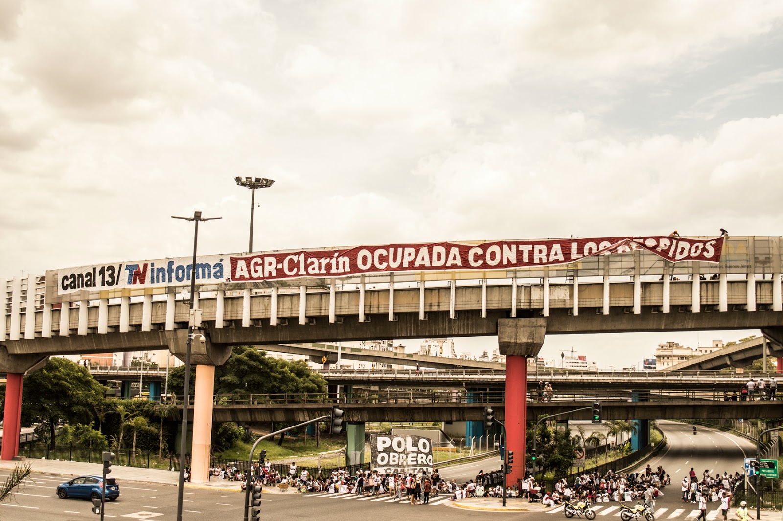 La asamblea de despedidos de la gráfica tomada por sus trabajadores, resolvió la movilización de ayer a todas las empresas del grupo Clarín. La más importante, en la autopista bajo los ventanales de Canal 13 y TN, tuvo el objetivo principal de derribar el cerco mediático sobre el reclamo de los trabajadores, que ha tenido escasa cobertura en los medios tradicionales. La Retaguardia estuvo allí, tomó testimonios de algunos de los dirigentes presentes y realizó un informe fotográfico. (Por La Retaguardia)