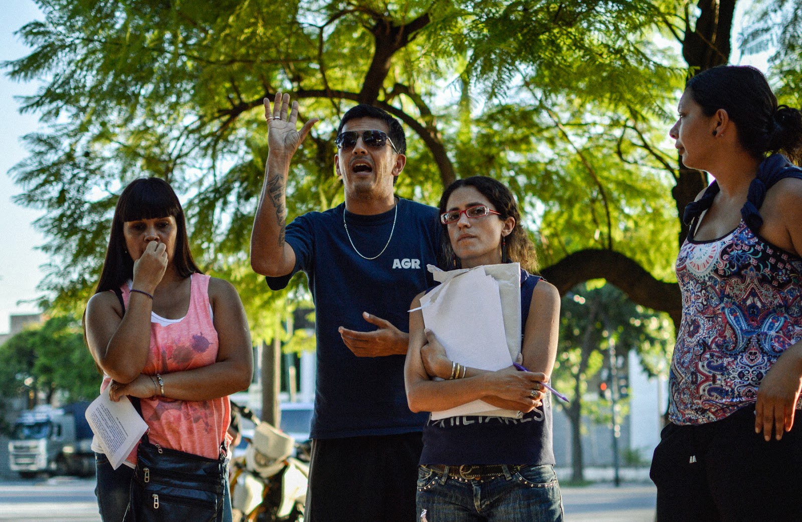 —RS: Soy docente, estaba de vacaciones. Pensaba ir con mis hijos de paseo a centros culturales, a parques; estamos de paseo todos los días en Pompeya… Les explicamos a los chicos por qué estamos acá, qué está haciendo el papá. Hay chicos de distintas edades. Incluso, hace unos días nació la quinta hija de un delegado. Lo señalo por la crueldad de todo esto; cerraron la planta, 380 familias afuera, la mayoría con hijos, pequeños en muchos casos. En algunos casos, estamos de vacaciones. En otros, las mujeres están trabajando y vienen cuando terminan de trabajar. Otras eran amas de a casa y ahora están acá, yendo a los lugares de trabajo, explicando qué es lo que está pasando. También fue una forma de romper un poco lo que llamamos el cerco mediático. Porque como estamos contra Clarín, hay una presión muy fuerte en los medios para que esto no se difunda. Periodistas que en las radios hablan, en los programas de televisión no les permiten hablar. Hemos recibido la solidaridad de muchos periodistas, que nos comentan que desde adentro presionan para que no se pueda hablar de esto.