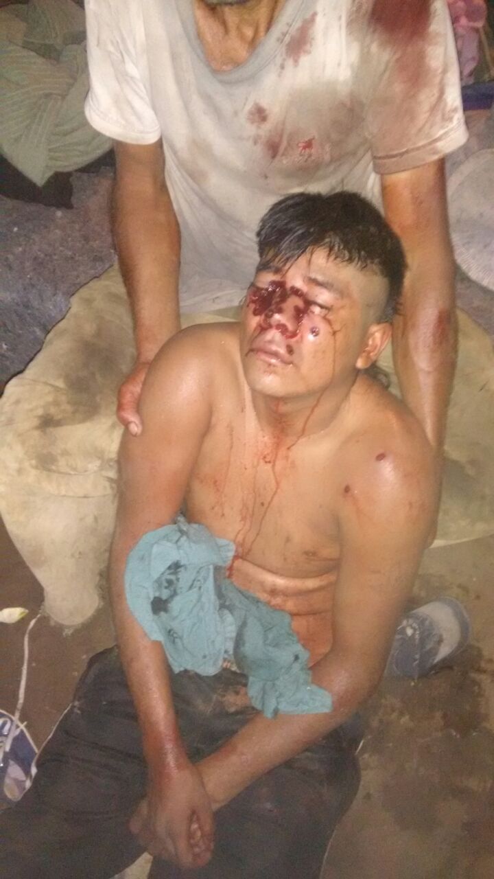 «Fue torturado, tiene el cuerpo con golpes, moretones y cortes. Tiene una hinchazón en la cabeza, el ojo derecho todo morado y la nariz y la boca con cortes. Las manos hinchadas, las muñecas con cortes por las esposas. Los brazos morados, las piernas. La espalda raspada porque lo arrastraron. Entre 10 policías lo golpearon», denunció Torres.