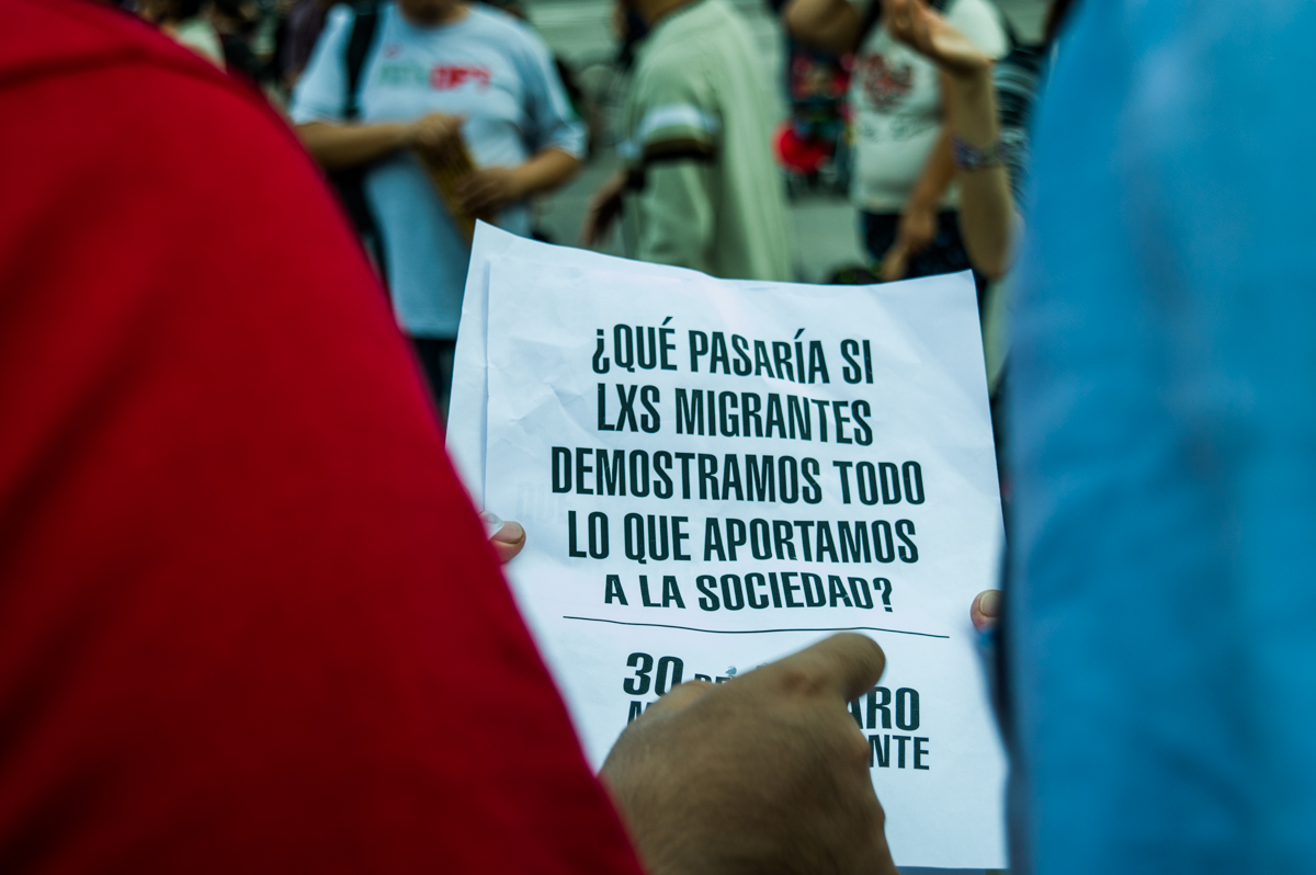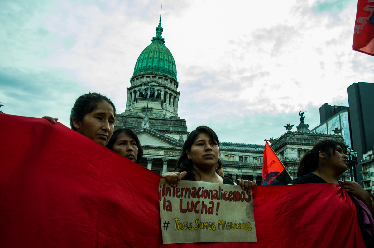 El 30 de marzo se llevó a cabo el primer paro migrante en la Argentina. Más de 30 colectividades nos dimos cita en Plaza Congreso, para reconocernos y mostrar lo que somos capaces si nos organizamos. La convocatoria inicial surgió del Colectivo Simbiosis Cultural, donde la mayoría de sus integrantes son de nacionalidad boliviana. Han luchado por justicia por las personas asesinadas en el taller textil de la calle Luis Viale que se incendió el 30 de marzo de 2006, donde murieron cinco niños y una mujer embarazada, evidencia de los talleres clandestinos donde los migrantes son sometidos a condiciones de esclavitud laboral.