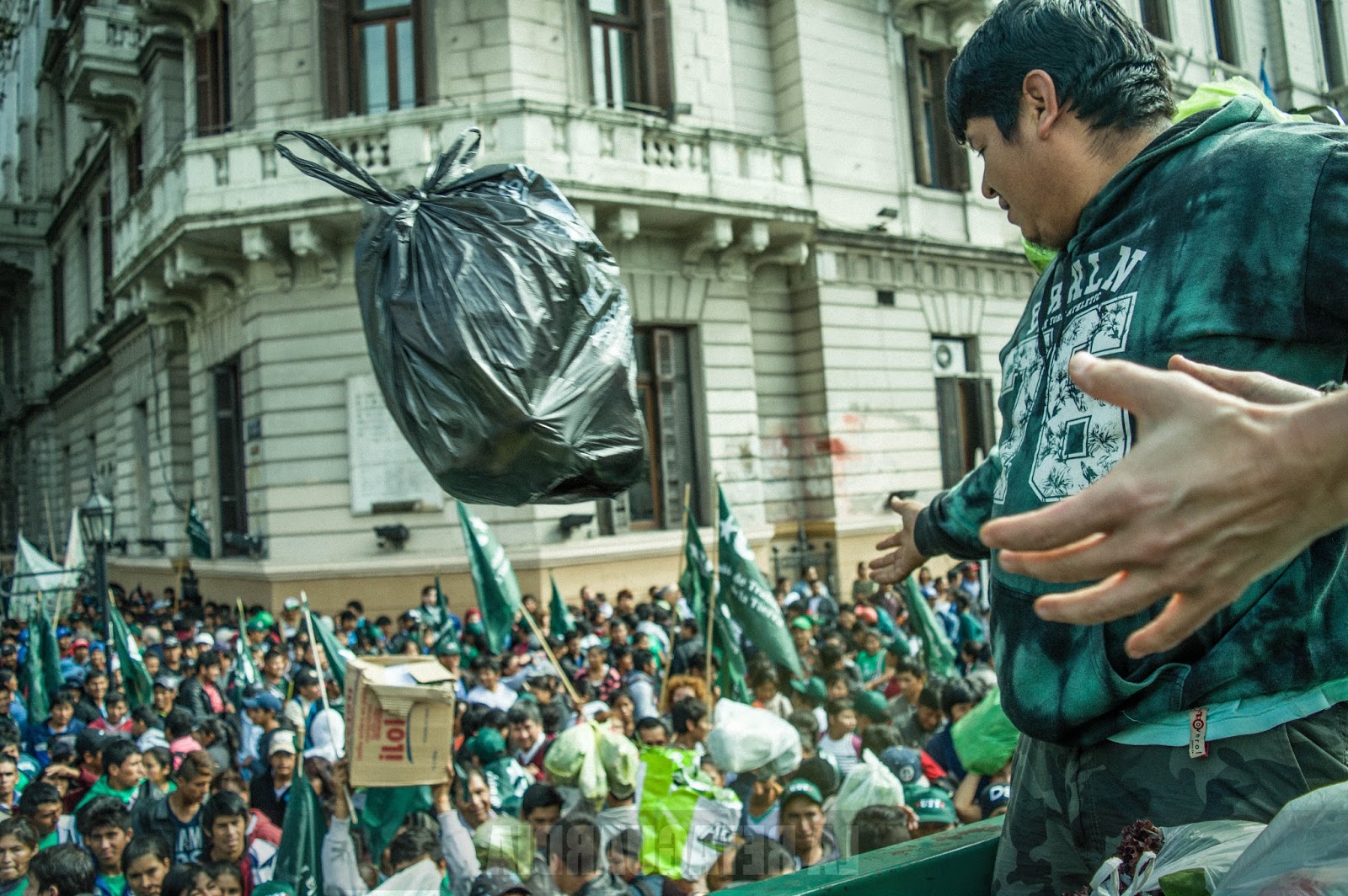Esta semana la Ciudad de Buenos Aires fue escenario de dos protestas de pequeños productores y agricultores familiares, que se acercaron hasta la Plaza de Mayo para entregar, a modo de protesta, unos 20 mil kilos de verduras. Los productores están nucleados en la Unión de Trabajadores de la Tierra (UTT). Aquí un informe fotográfico de la mano y ojo de Agustina Salinas. (Por La Retaguardia)