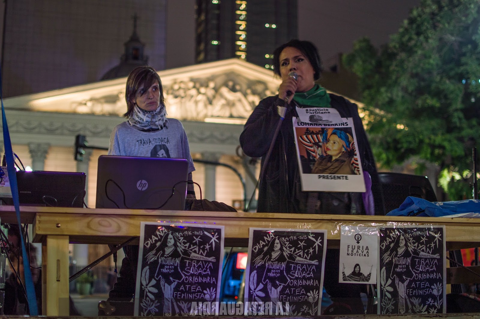 Ayer por la tarde, apareciendo ya la noche, y tras la represión contra organizaciones sociales en la Av. 9 de Julio, se realizó una nueva marcha contra los travesticidios, de la que participó también Higui, Eva Analía de Jesús, tras haber recuperado su libertad, como puede verse en la imagen con la que arranca este fotoinforme de Agustina Salinas, con audios de Giselle Ribaloff con Claudia Vázquez Haro, de Otrans, y Sasha, la hermana de Diana Sacayán. (Por La Retaguardia)