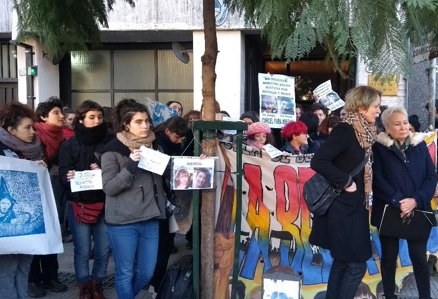 Foto: Anna, la mamá de Natalia, en la presentación de la apelación, con su abogada Liliana (con la carpeta en la mano).