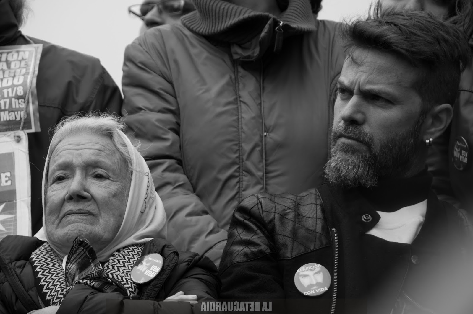 Foto: Nora Cortiñas con Germán Maldonado en el acto a 2 meses de la desaparición de Santiago (Archivo Agustina Salinas-La Retaguardia)