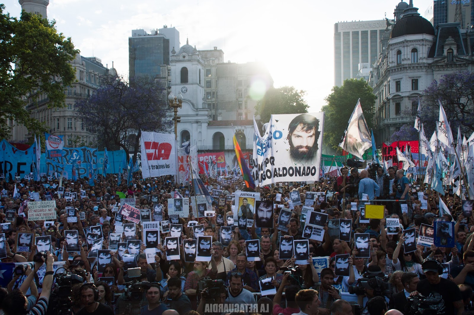 Se cumplieron 3 meses de la desaparición forzada y asesinato de Santiago Maldonado cuando escapaba de una represión ilegal de Gendarmería en la Pu Lof en resistencia Cushamen. Según testigos, la última vez que se lo vio a Santiago, Gendarmería lo cargaba en una camioneta. 77 días después apareció muerto en un sector del río donde el juez Guido Otranto, que tuvo que apartarse de la causa, ya había realizado rastrillajes. En todo el país se realizaron marchas pidiendo verdad y justicia, responsabilizando al gobierno. En el exterior el reclamo fue el mismo. En Londres, Nora Cortiñas de Madres de Plaza de Mayo Línea Fundadora, realizó una vigilia frente a la embajada. Aquí nuestra cobertura de la multitudinaria jornada de ayer en la Plaza de Mayo, con fotografías de Agustina Salinas, más entrevistas y videos de Fernando Tebele (Por La Retaguardia)