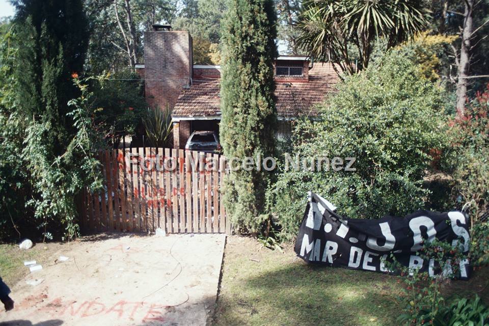 Foto: La casa de Etchecolatz en el Bosque Peralta Ramos en otras épocas de escraches, en septiembre de 2005. (Marcelo Nuñez)