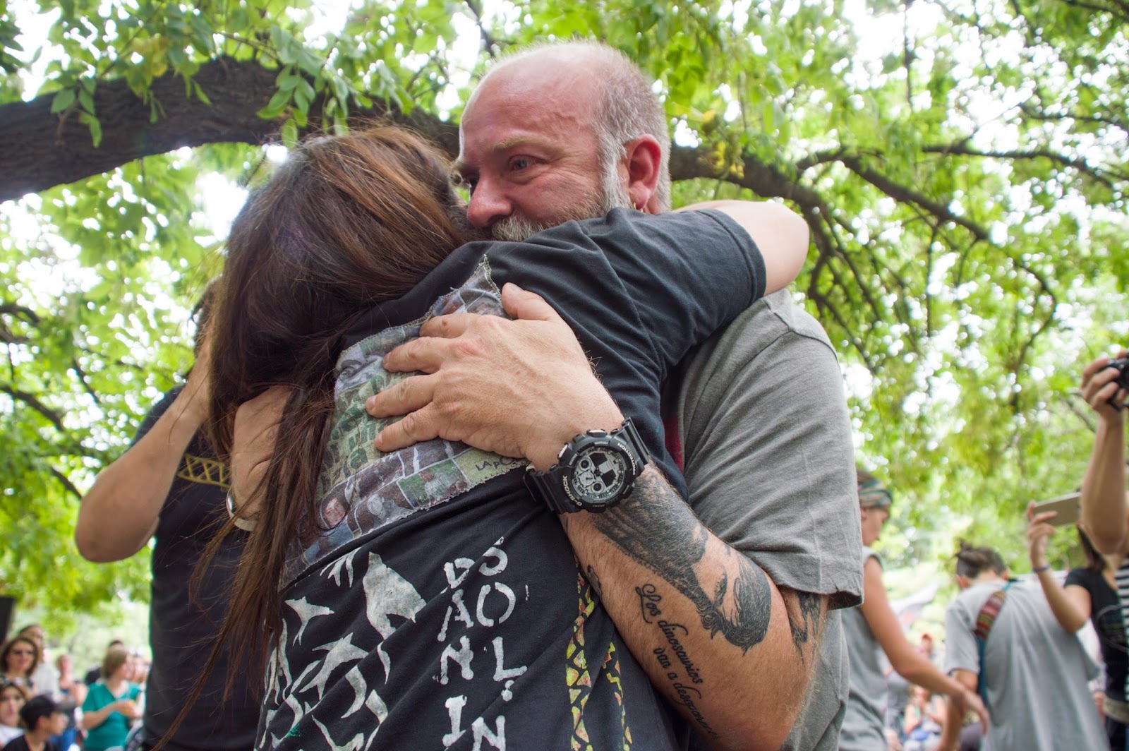 Sobre el final llegó la emoción: «nada más, lo único que quiero decir es que siento como una gran emoción estando acá porque como decía antes, a los compañeros y amigos de Luciano Arruga lo fuimos conociendo casi desde su inicio y me emociona ver cómo han crecido me emociona ver cómo organizan, me emociona Ver cómo pueden también contener a tantos otros familiares, me emociona que hoy hayan podido traer al hermano y al padre de Rafael Nahuel, que nosotros los organismos derechos humanos no pudimos traer. Esto que yo digo lo aprendí, sobre todo de una compañera que quisiera que fuera un nombre que recordaran y que si no conocen investigan que fue indudablemente una bandera en la lucha contra la impunidad Adriana Calvo. Que siempre que miraba los jóvenes sabía que lo que había que hacer es dejarlos andar y también lo aprendí de Cachito que tan preocupado estaba, porque los jóvenes puedan seguir luchando y hagan nuevamente historia.