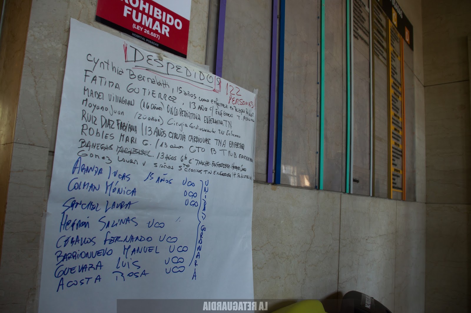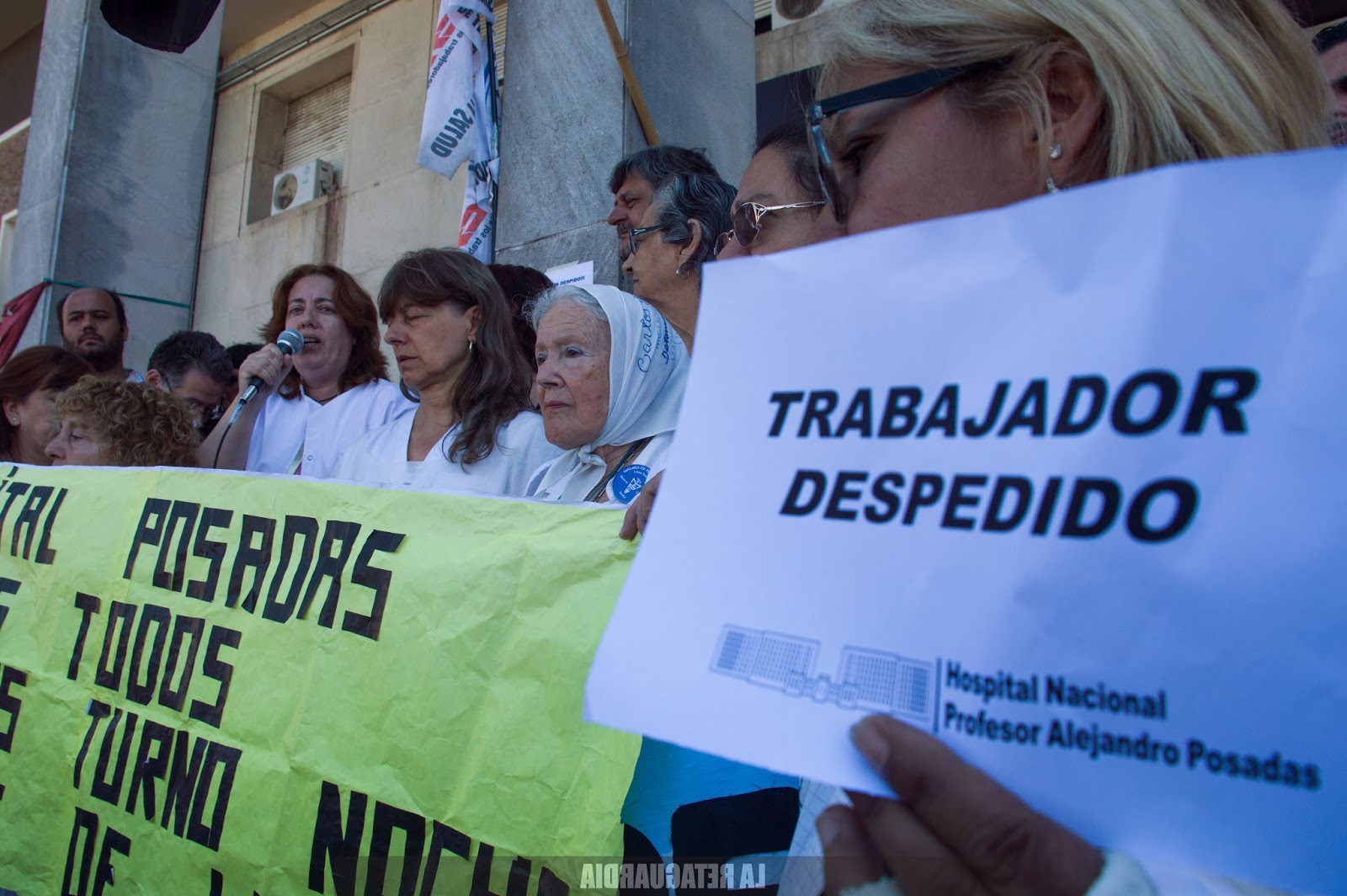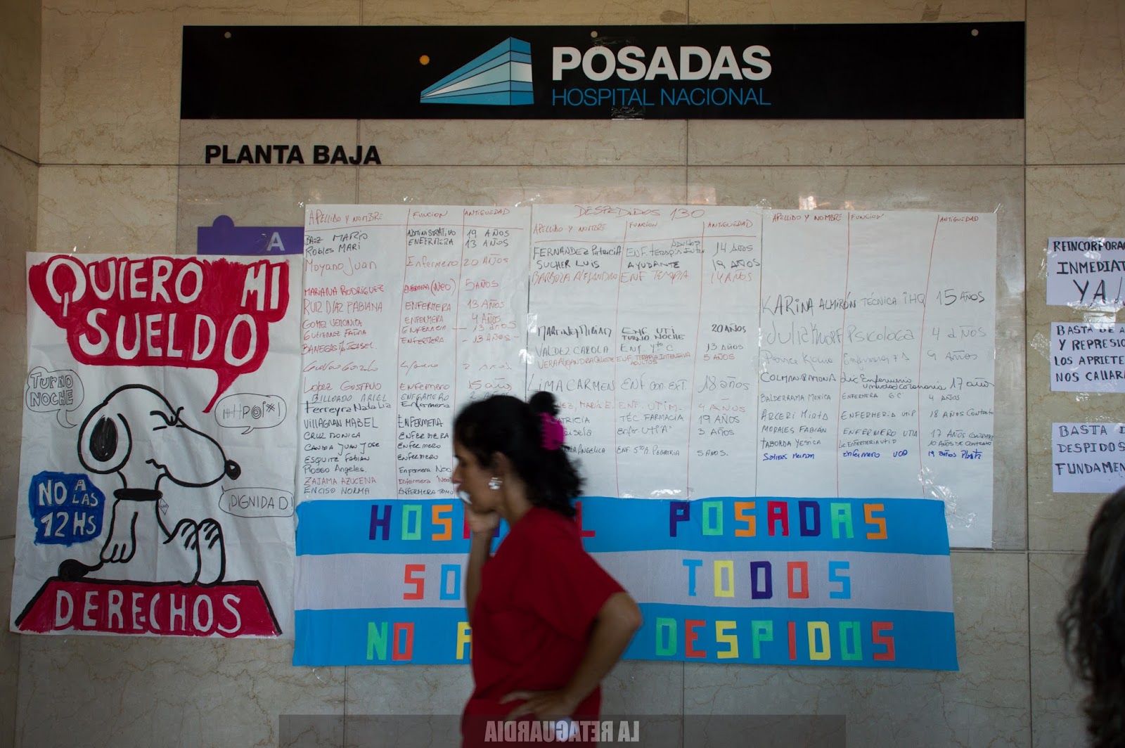 En el marco de los 122 despidos registrados a través de una precaria lista armada por trabajadores ante la ausencia de un listado oficial, se realizó ayer una asamblea en la entrada de la institución. Se resolvió realizar un paro de 24 horas el martes y trabajar en un plan de lucha para revertir el vaciamiento. Los despedidos tienen distintos tipos de contratación y antigüedad en el hospital y denuncian que las autoridades buscan desguazar distintas áreas para luego tercerizarlas o privatizarlas. Allí estuvo Agustina Salinas. A continuación, su registro fotográfico. (Por Rosaura Barletta La Retaguardia)