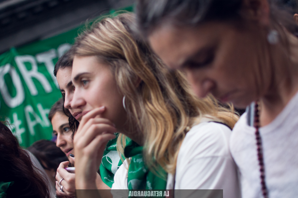 Ayer se realizó otra jornada de Pañuelazo en las puertas del Congreso, mientras continúa la discusión en comisiones por el Aborto Legal, que llevará meses hasta llegar al recinto. La llovizna, que empañó las lentes y obligó a levantar la actividad, no pudo opacar los pañuelos verdes agitandose. Aquí un fotoinforme de Agustina Salinas. (Por La Retaguardia).