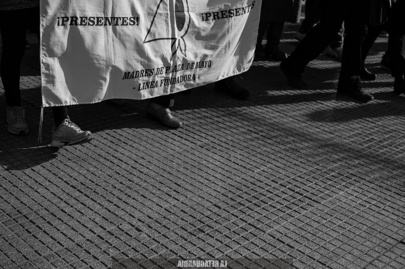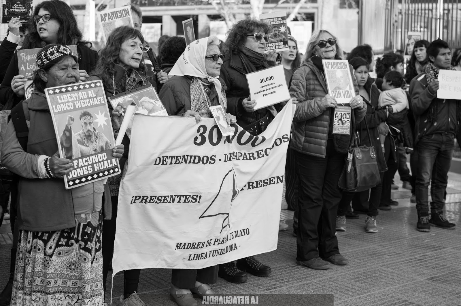 Las calles paralelas a la Plaza de Mayo estaban cerradas, la flamante reja en su extensión estrenaba candado apretado. Y banderas argentinas que los familiares del ARA San Juan colocaron a lo largo de la reja junto a otras banderas y carteles con las caras de los submarinistas. Exigen al Estado una respuesta. Un camión pasa lento, de contramano, por al lado del Cabildo, pero pegado a la Plaza, en su acoplado lleva cajas de sonido y se va a convertir, en unas horas, en escenario de una protesta sindical, se acomoda perezoso a la altura de Avenida de Mayo. Son las tres y media de la tarde. “Como todos los jueves”, dice alguien y comienza la ronda de Madres de Plaza de Mayo Línea Fundadora, dando el presente por cada compañero detenido desaparecidos. Desde Misiones, viajaron varios guaraníes que hasta hace un rato se estaban sacando fotos grupales con Mirta Baravalle. Al finalizar la ronda, de a turnos, van a contar los problemas que tienen en sus comunidades. (Por La Retaguardia)