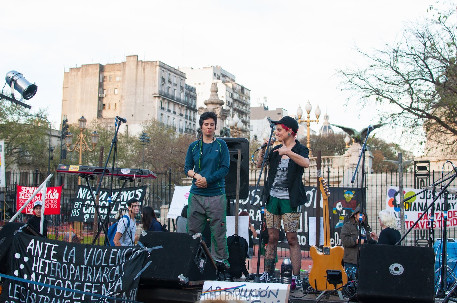 El viernes pasado en Congreso se realizó un picadito para visibilizar la campaña por la absolución de Higui, quién estuvo presa por defenderse de una «violación correctiva» por parte de varios hombres. Higui padeció violencia y estigmatización sistemática por ser lesbiana y pobre, sigue procesada por defenderse de aquel ataque e irá a juicio en Abril de 2019, en el tribunal N°7 de San Martín. La justicia busca juzgarla sin tener en cuenta los ataques recibidos previamente y la legítima defensa de su vida e integridad física. Con un picadito bajo el sol, bandas y oradores en la plaza de Congreso, la actividad fue masiva y con un reclamo en común: la absolución para Higui. Aquí un fotoinforme (Agustina Salinas para La Retaguardia.)