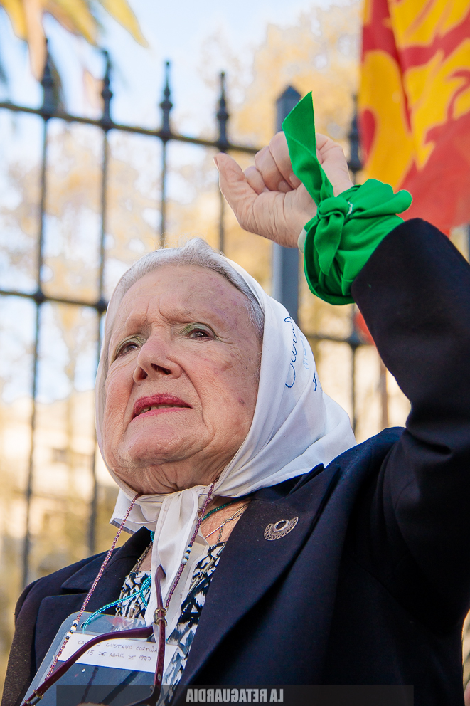 En el documento leído también se menciona la prisión domiciliaria que obtuvo Etchecolatz: “Fue gracias a la inmediata denuncia y a la masiva respuesta popular que logramos hacer volver atrás semejante beneficio”. A lo que Nora Cortiñas agregó: “Y hay que exigir justicia por todos los desaparecidos durante gobiernos constitucionales, por Santiago Maldonado, por Rafael Nahuel, todos los días”.