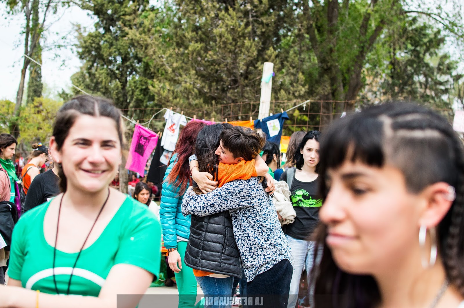 Con tierra entre las uñas, polvillo en las orejas, con las zapas todas sucias, la mirada ojerosa y los cachetes quemados por el sol, me pongo a pensar qué escribir para esta crónica. Si arranco con el micro yendo hacia Trelew, o con la feria autogestiva feminista, o con la marcha gigante de más de 40 cuadras de extensión, o con las vecinas de Trelew abrazándonos y sonriéndonos, o el remisero diciendo «Gracias por todo, ojalá vuelvan pronto».