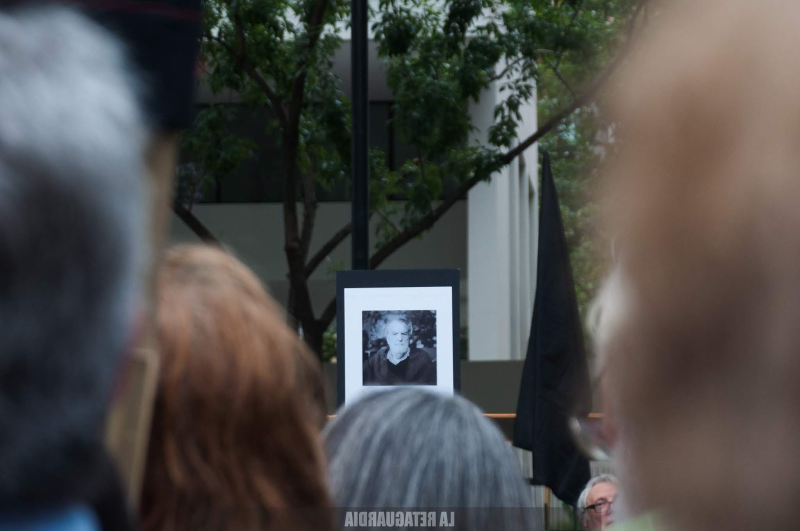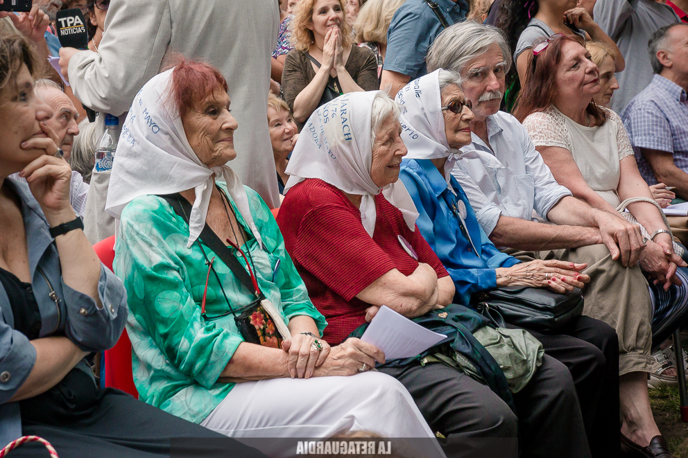 Un adiós nunca puede ser grato. Es difícil decir «qué buena que estuvo la despedida a Bayer», porque es claro que somos muchas las personas que comenzamos a extrañarlo; aunque no fuéramos parte de su cotidianeidad, él sí lo era de la nuestra. Compartimos nuestro reflejo de una jornada emotiva, que no estuvo buena, porque no estuvo Osvaldo Bayer. Participaron integrantes de Madres de Plaza de Mayo Línea Fundadora, el Sindicato de Prensa de Buenos Aires (SiPreBA), además de artistas como Rolando Goldman (con su charango tocó Hijos del Pueblo), Ezequiel Jusid de Arbolito y El Quinteto Negro La Boca, interpretando letras que Bayer escribió para la banda. (Fotos de Natalia Bernades y Agustina Salinas. Video de la transmisión en vivo: Luis Angió para La Retaguardia)