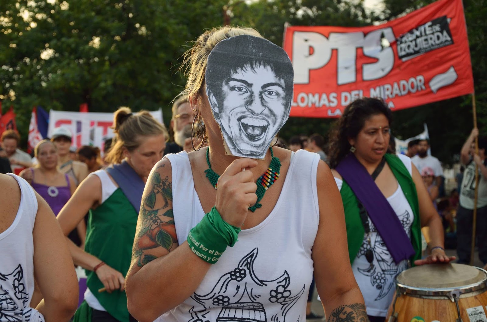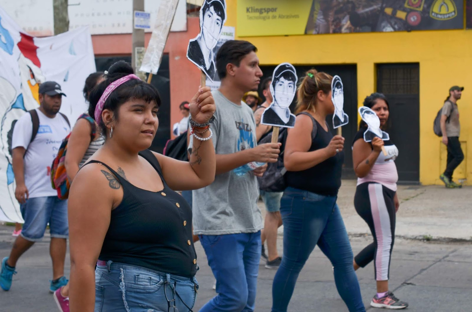 La marcha recorrió poco más de veinte cuadras para llegar a la plaza Luciano Arruga. Durante esa etapa de la convocatoria, en la que las columnas e independientes ocupaban una fila de gente de siete cuadras atravesando Lomas del Mirador de punta a punta, el micrófono del camión de sonido estuvo abierto para familiares de víctimas. Desde ahí, desde la cabecera de la movilización, de cara a las primeras banderas, las más improvisadas, con letras imperfectas, las que nombran a pibes adolescentes, habló el papá de Diego Ávalos: “Mi hijo fue fusilado por José Pérez Buscarolo de Hurlingham, subcomisario de la Policía Federal. En mayo, del 2 al 8, serían los días del juicio. Espero que nos acompañen y muchas gracias a todos”. A veces alcanza con esbozar las respuestas de las famosas 5W, (qué, cuándo, dónde, cómo y por qué) aunque el porqué puede no ser más que un signo de pregunta. A veces se necesita más tiempo, más llanto, más aliento.