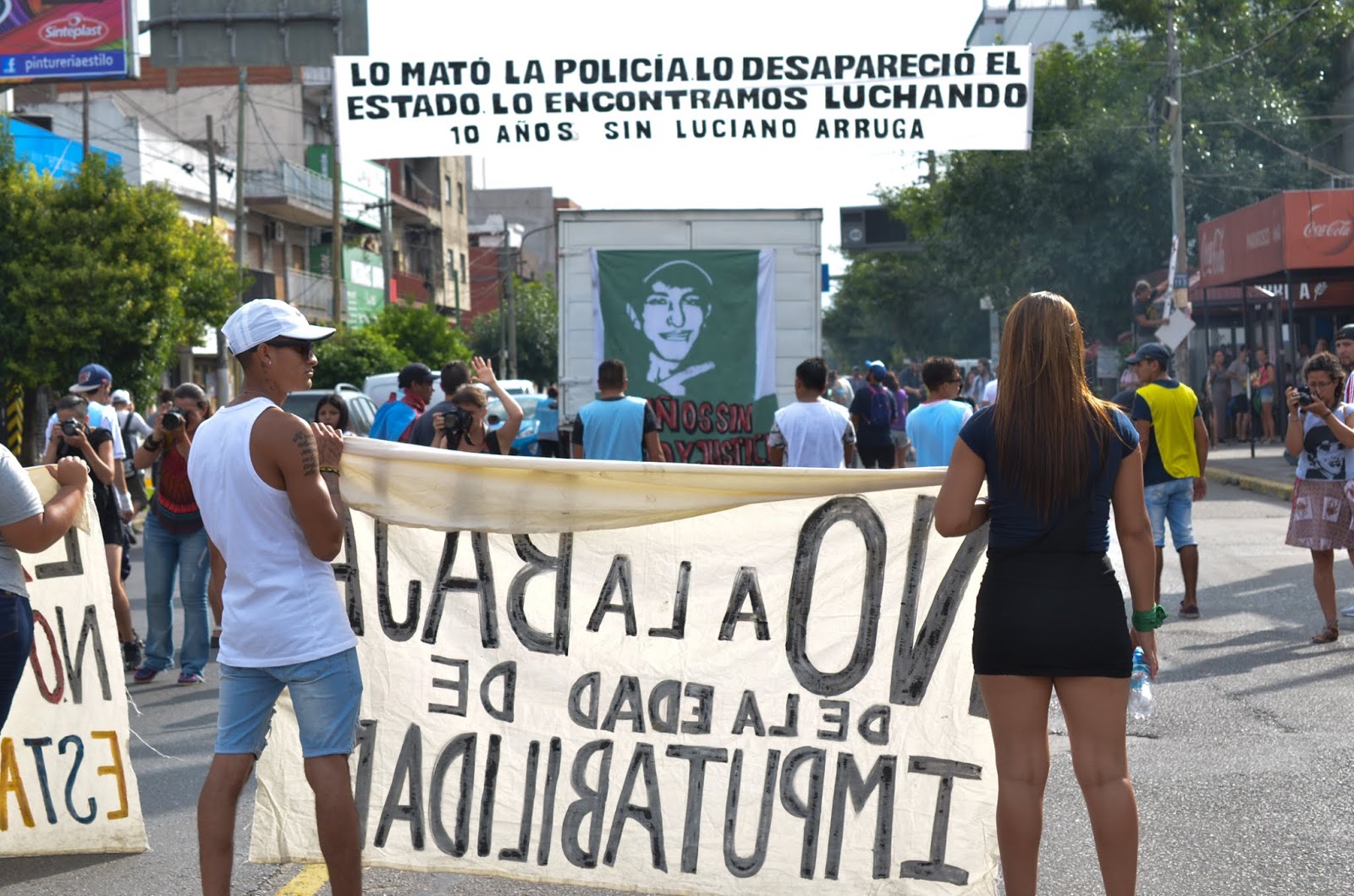 Algo de todo eso es lo que Vanesa Orieta, la hermana de Luciano, intentó poner en palabras en una de sus intervenciones: “Nos encontramos hoy acá en General Paz y Mosconi. En este lugar estamos concentrando para marchar hacia la plaza de 12 de Octubre, plaza y barrio donde Luciano pasaba gran parte de su tiempo. Estamos recordando el caso de Luciano como un ejemplo de una problemática que es la represión estatal y que se lleva la vida de cientos de miles de pibes y pibas de los barrios. Intentamos a través de estas actividades generar una concientización, empezar a poder relacionar la problemática represiva con la problemática de inseguridad y que se empiece a entender que la inseguridad es y fue aprovechada por los diferentes gobiernos constitucionales para generar el miedo social, para instalar la figura de un otro peligroso que puede ser un trabajador que exige por su fuente de trabajo, su salario, el pibe de los Barrios, el referente de un pueblo originario y bueno, una vez puesta la mirada en esa figura peligrosa se avanza con medidas represivas que son las que venimos notando: los pedidos de bajar la edad de imputabilidad de los menores, el encierro de nuestros pibes y nuestras pibas cada vez más jóvenes, las torturas dentro del encierro o fuera en el barrio, dentro de la patrulla, las desapariciones forzadas… bueno, todas estas herramientas a pesar de que supuestamente vivimos una era democrática. Es un momento para sin duda ver que está muy mal la niñez y la adolescencia, que se está avanzando fuertemente con medidas represivas, pero sin perder la memoria y ser muy duros en nuestra mirada con relación al rol que tuvieron los diferentes gobiernos constitucionales que han logrado que se naturalice la muerte de nuestros pibes y nuestras pibas de los barrios.”