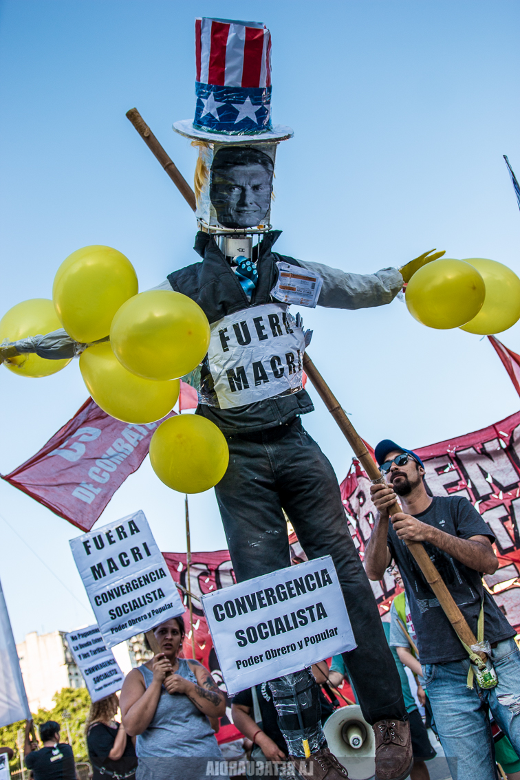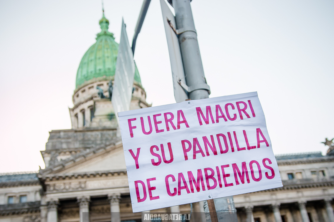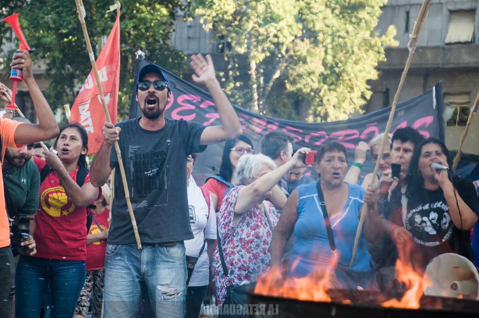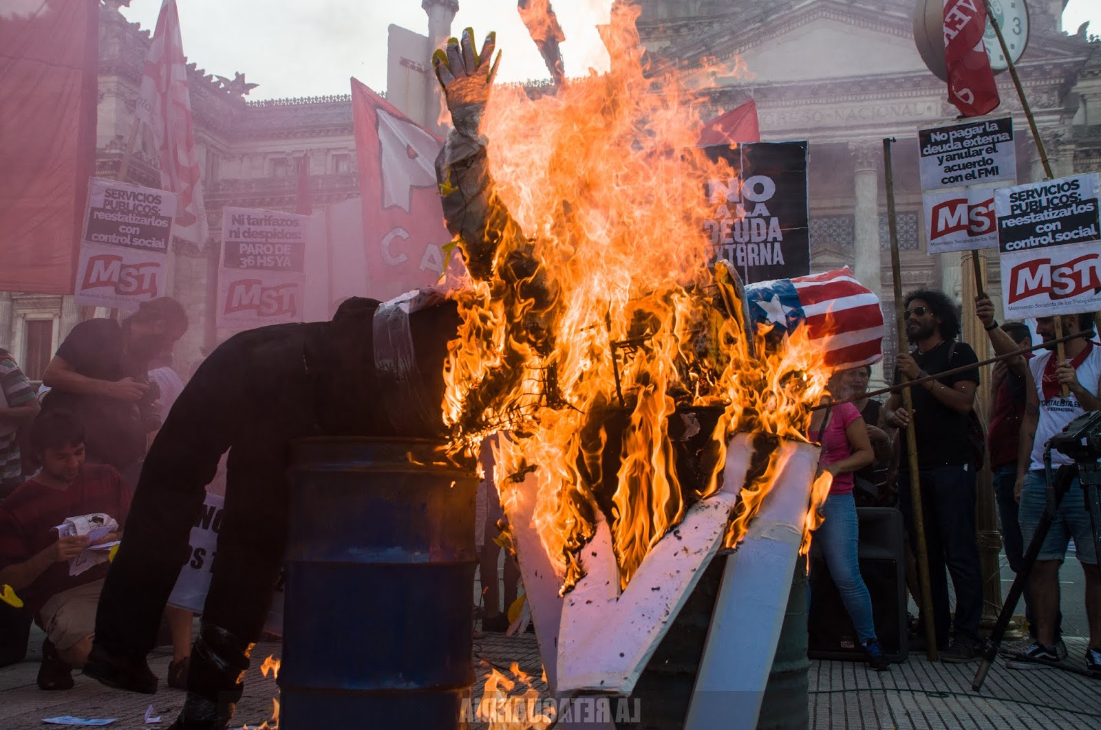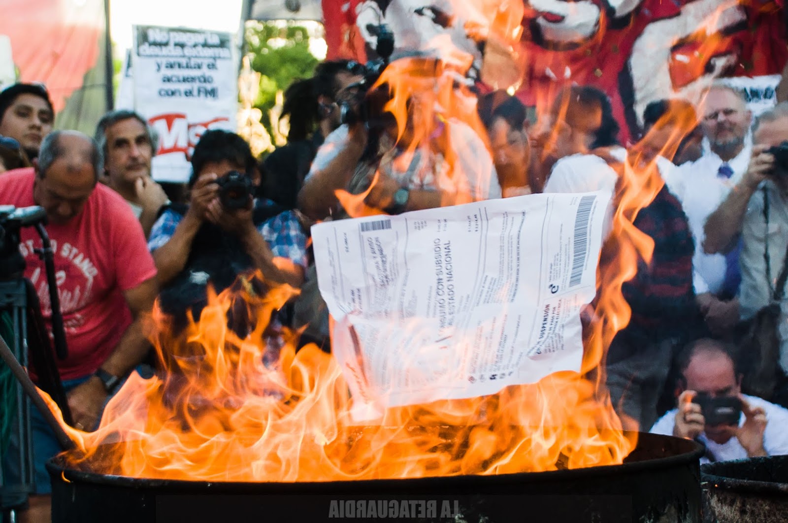 El jueves pasado las organizaciones y partidos políticos que componen el Encuentro Memoria, Verdad y Justicia (EMVyJ) se concentraron en la Plaza de Congreso para repudiar el tarifazo que aplicó el Gobierno de Mauricio Macri en los servicios de agua, luz y gas. Con una quema simbólica de boletas, un muñeco personificando a Macri y las siglas del Fondo Monetario Internacional (FMI) realizaron un acto donde denunciaron que el aumento de tarifas no conduce a un buen servicio ya que ese mismo día y solo en Capital Federal hubo cortes de luz que afectaron a mas de 30 mil usuarios. Denunciaron que este paquete de aumentos es parte del ajuste que impone el FMI. (Por Natalia Bernades y Agustina Salinas para La Retaguardia)