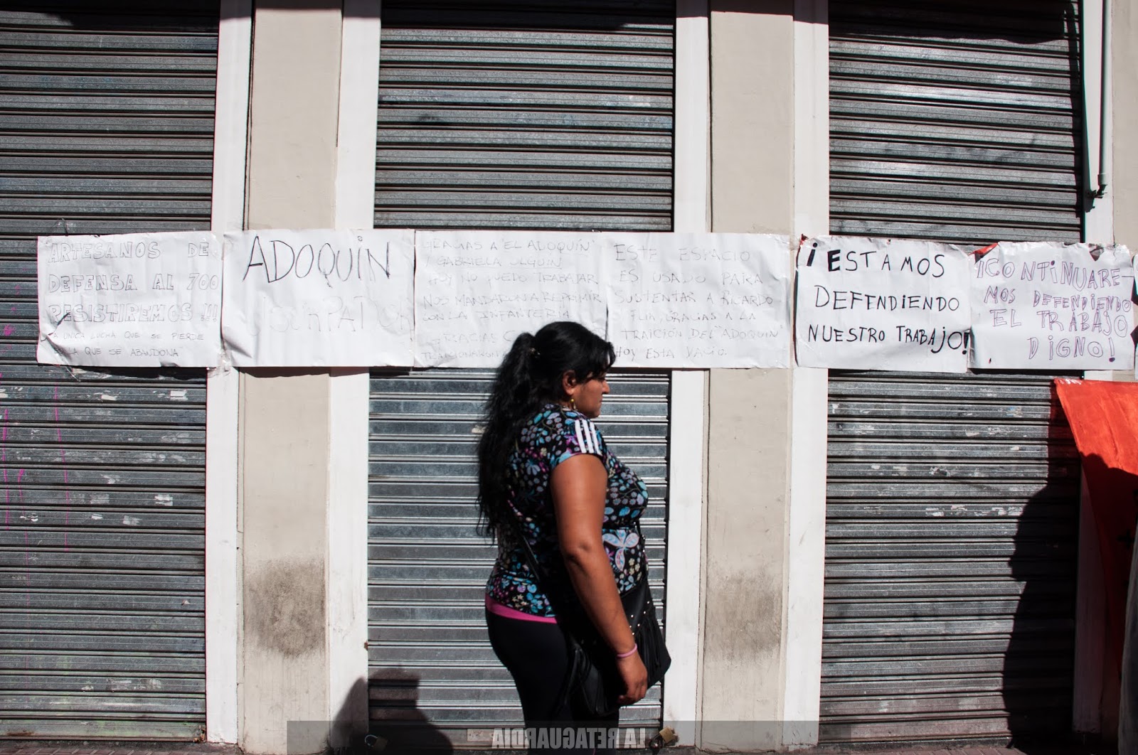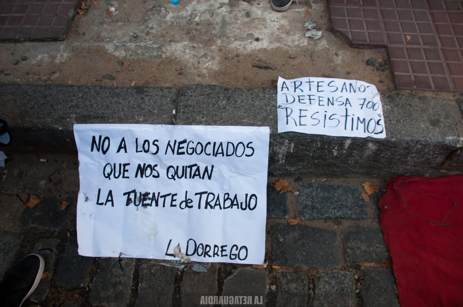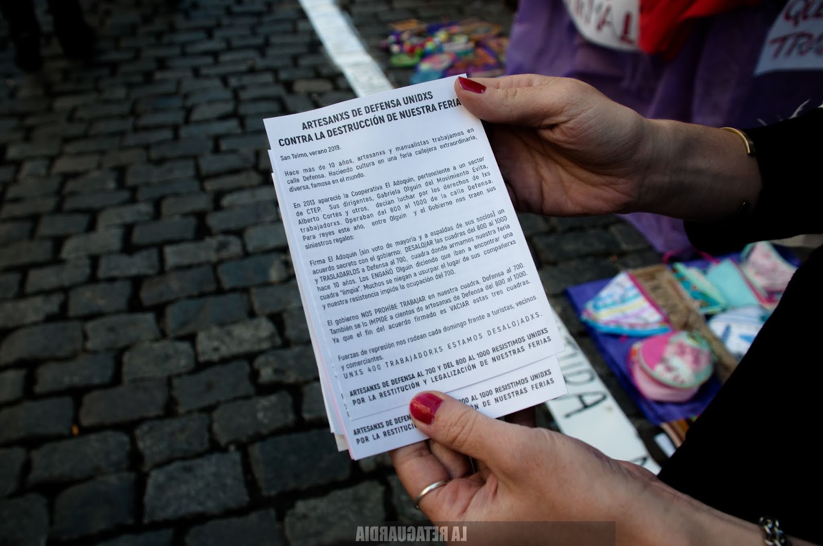 La policía desalojó hoy a un grupo de artesanas y artesanos que se niegan a ser parte de un acuerdo entre el Gobierno de la Ciudad y la Cooperativa el Adoquín (CTEP), que intenta regularizar la situación de un grupo en desmedro del otro. (Por Agustina Salinas para La Retaguardia)