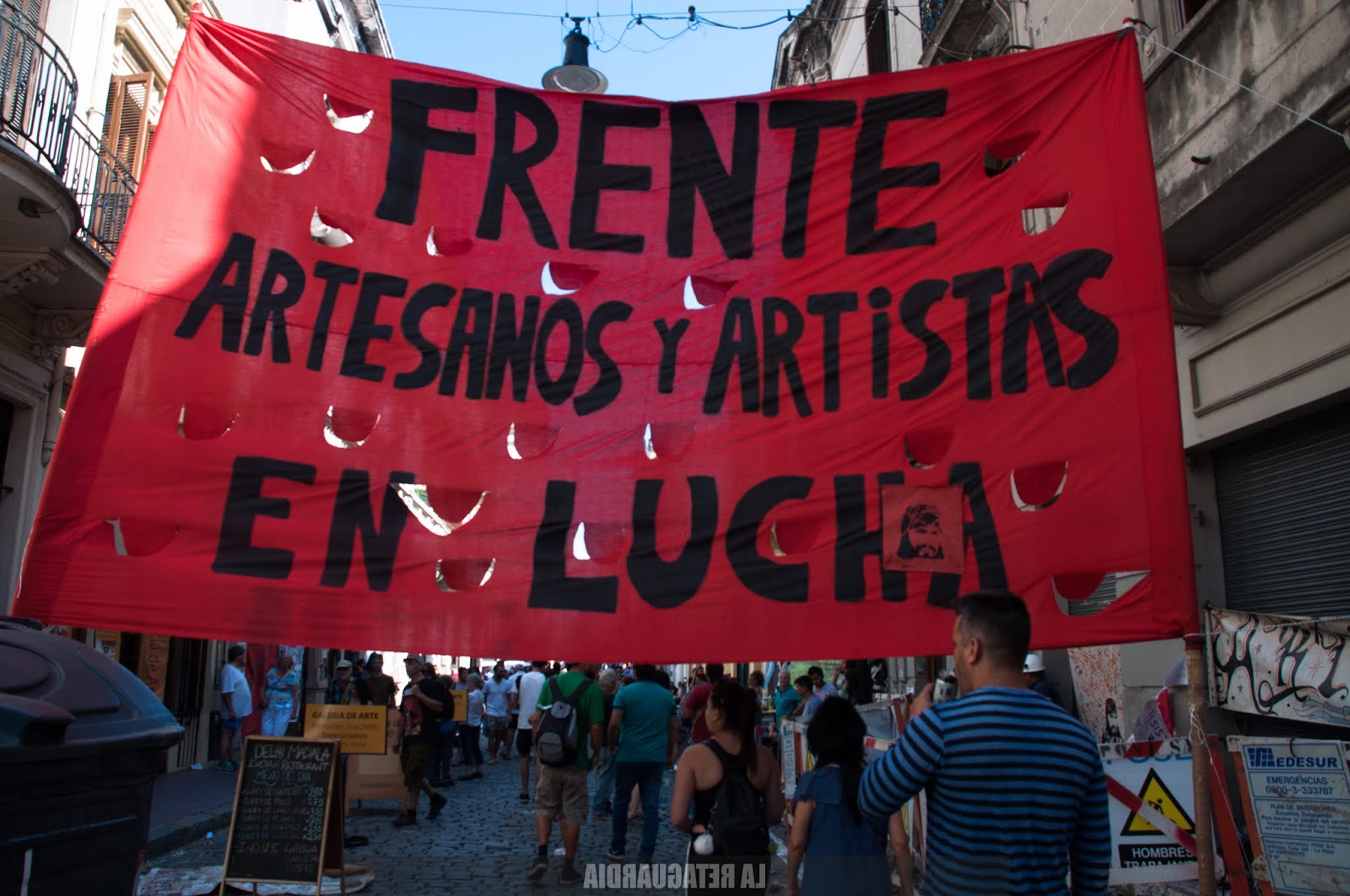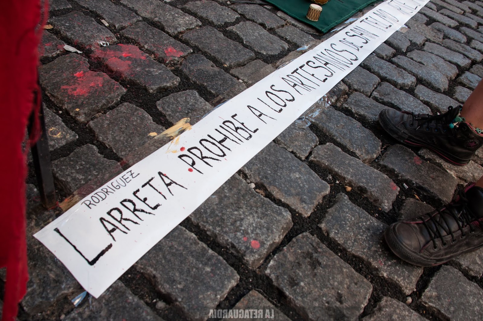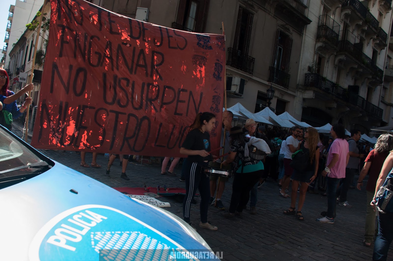 La policía desalojó hoy a un grupo de artesanas y artesanos que se niegan a ser parte de un acuerdo entre el Gobierno de la Ciudad y la Cooperativa el Adoquín (CTEP), que intenta regularizar la situación de un grupo en desmedro del otro. (Por Agustina Salinas para La Retaguardia)