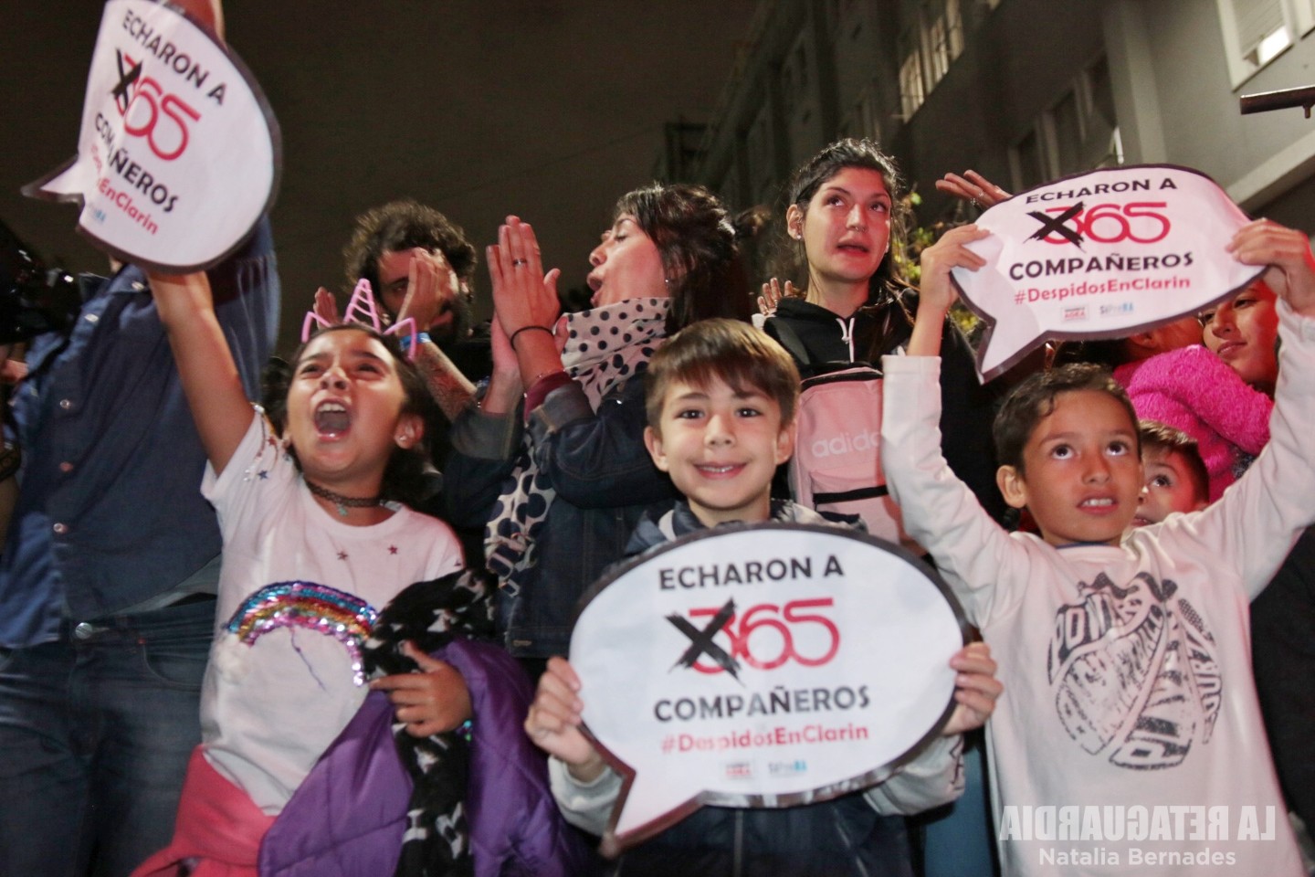 Apenas horas antes de que se conociera la noticia de las reincorporacones, se realizó el miércoles por la noche, frente al edificio de Clarín, un masivo festival en apoyo a los 65 trabajadores y trabajadoras despedidos.