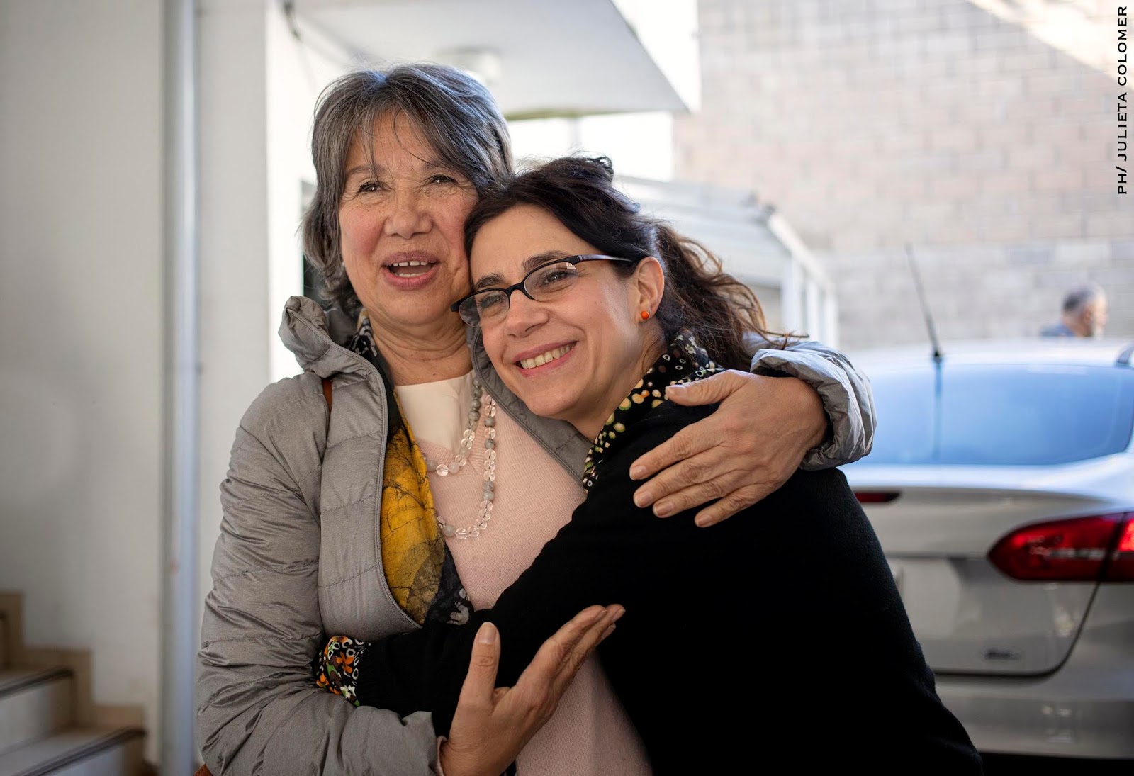 | Afuera de la sala, el abrazo entre Olga y Florencia Tajes Albani. |