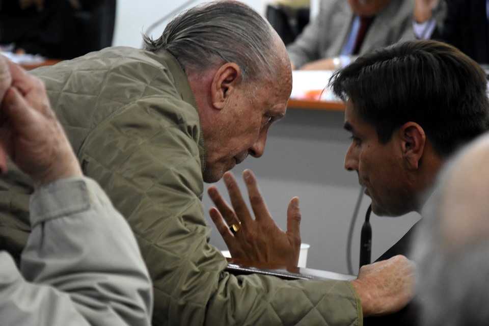 Cinto Courtaux es el único imputado preso. Apenas comenzada la audiencia, se acercó a su defensor oficial, Hernán Silva, para pedirle que solicitara la domiciliara. Lo hizo, y el tribunal la rechazó. (Foto: Fabiana Montenegro/DDJ) |