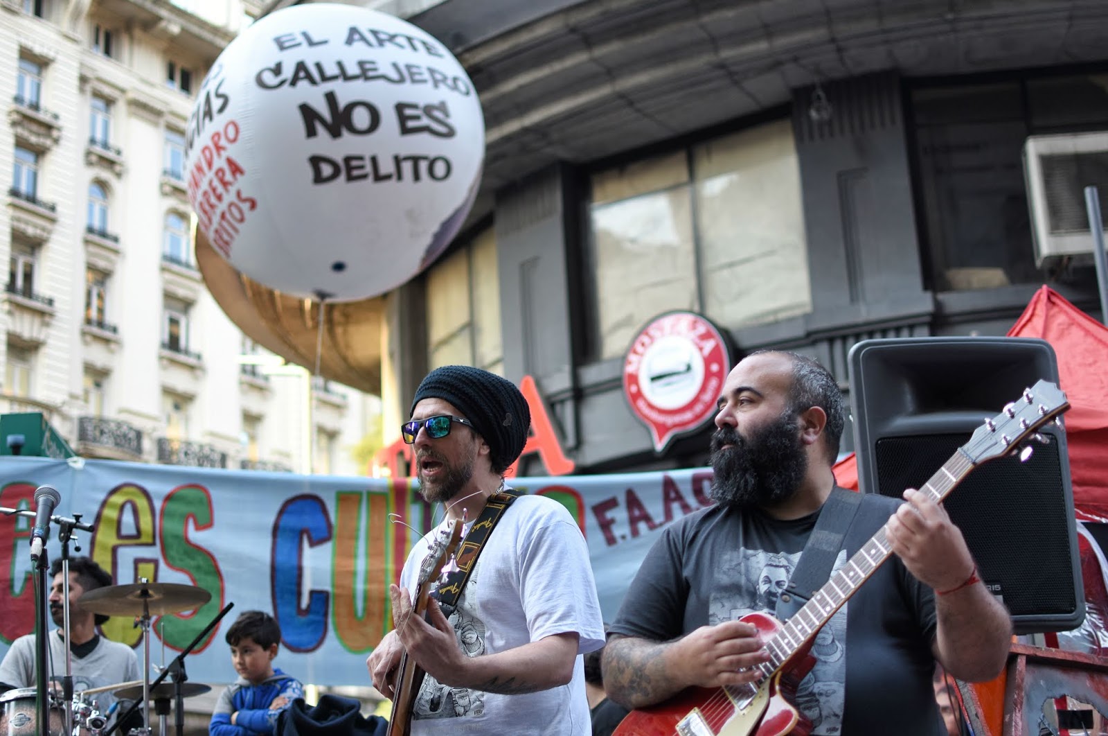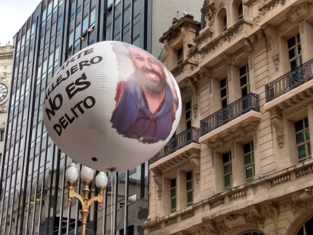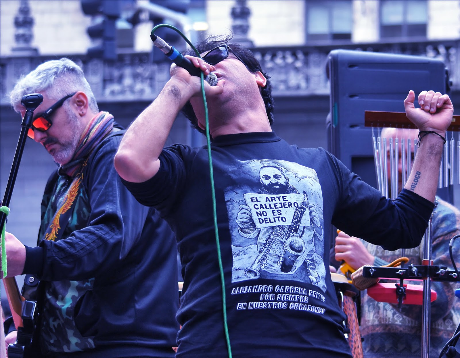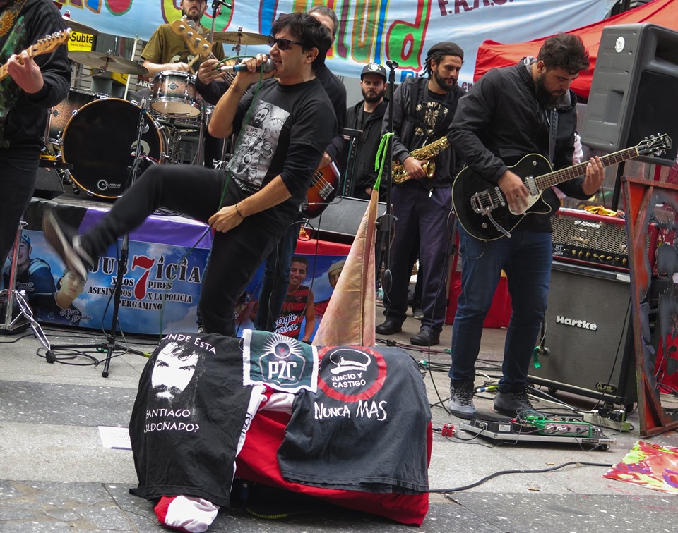 Arte en todas sus formas posibles. Colores diversos y fuertes. Calle. Protesta. Alegría. Emoción. Solidaridad. Es difícil pensar en que una jornada de homenaje represente tan bien al homenajeado. Entre risas y llantos ruidosos, Alejandro Cabrera Britos generó ayer una nueva jornada de protesta en defensa del arte callejero. Fue ayer en Diagonal Norte y Florida. Todo el festival fue emitido en vivo por Zona Libre (la radio de Familiares y Amigos de Luciano Arruga), La Retaguardia, Radio Presente y La Colectiva. Compartimos las fotos de González Ve y Juan Cicale, el audio de toda la jornada y los videos en vivo de nuestro Facebook. (Por La Retaguardia)