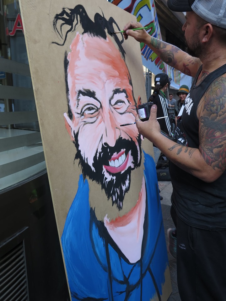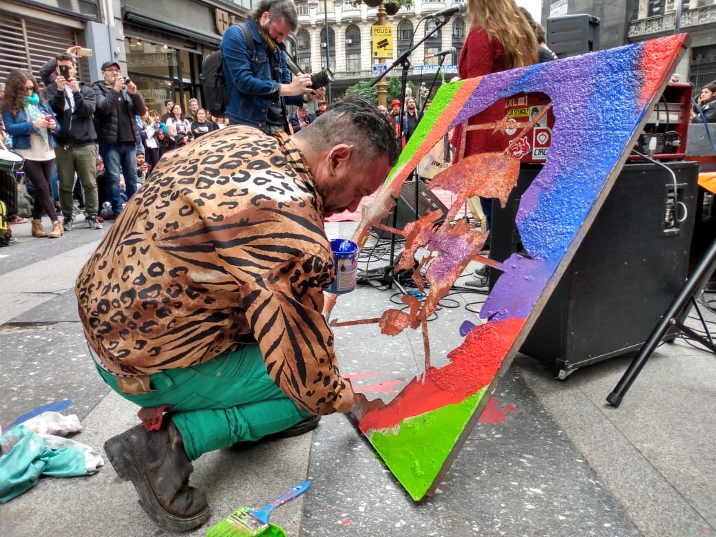 Mientras transcurría la tarde, Javier Quintana transformaba la foto icónica del Topo en pintura. (Foto: Juan Cicale) |