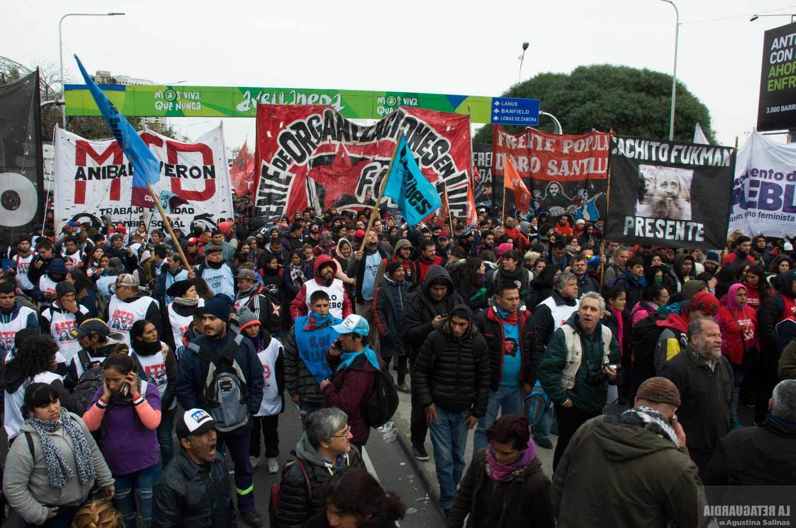 A 17 años de la Masacre de Avellaneda se realizó, como todos los años, la jornada cultural en la estación Darío Santillán y Maximiliano Kosteki. A lo largo del día, diversas intervenciones artísticas, paneles y bandas fueron parte de la jornada que no pudo finalizar en el Puente Pueyrredón por órdenes del ministerio de Seguridad que montó un operativo que impidió el paso. Con la valla desplegada sobre la Avenida, el miércoles 26 tampoco se pudo realizar el acto arriba del Puente Pueyrredón, tal como se hizo durante 16 años. La policía federal estuvo a cargo del cordón que impidió el ingreso y además amenazó con reprimir a familiares que intentaban pasar a realizar la jornada en memoria de Darío y Maxi. A continuación, un fotoinforme de ambos días de lucha, emociones, abrazos y exigencias de justicia (por Agustina Salinas para La Retaguardia.)