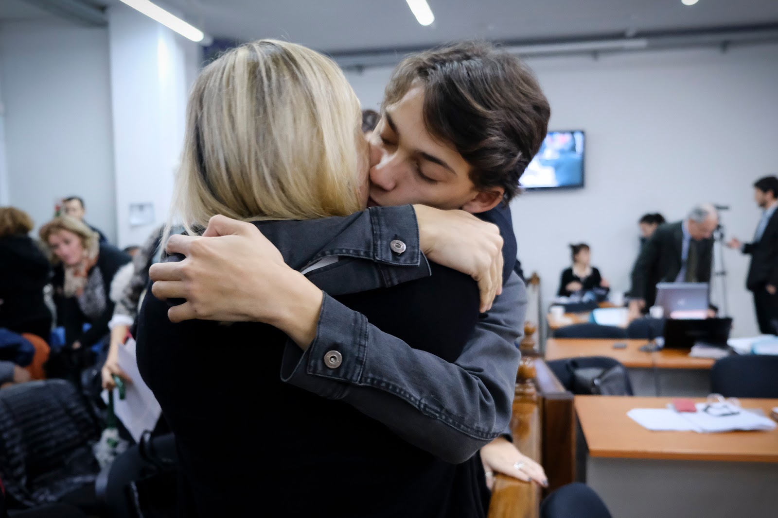 | El abrazo de María José con Luca. (Gustavo Molfino/DDJ) |
