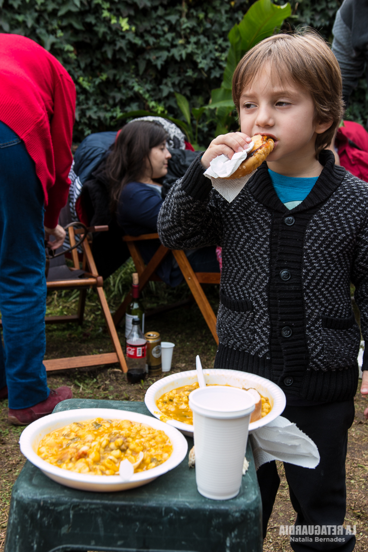 24 horas antes hubo quienes ya estaban tocando el timbre. Gente que se vino desde Avellaneda hasta Mataderos, un día antes, por error. Más o menos a esa misma hora, quienes somos parte de La Retaguardia nos juntábamos para la tarea previa. Los invitados adelantados huyeron al ver cuchillos, ollas, ingredientes que se apilaban en la mesa y discusiones que comenzaban. “No lleva morrón”. “El año pasado le pusimos”. “No, sólo el vegano tenía”. Recién con muchos platos servidos durante la jornada, nos arrepentiríamos de la discusión, porque la mayor parte del morrón debería haber sido para el picante, que se terminó demasiado pronto.