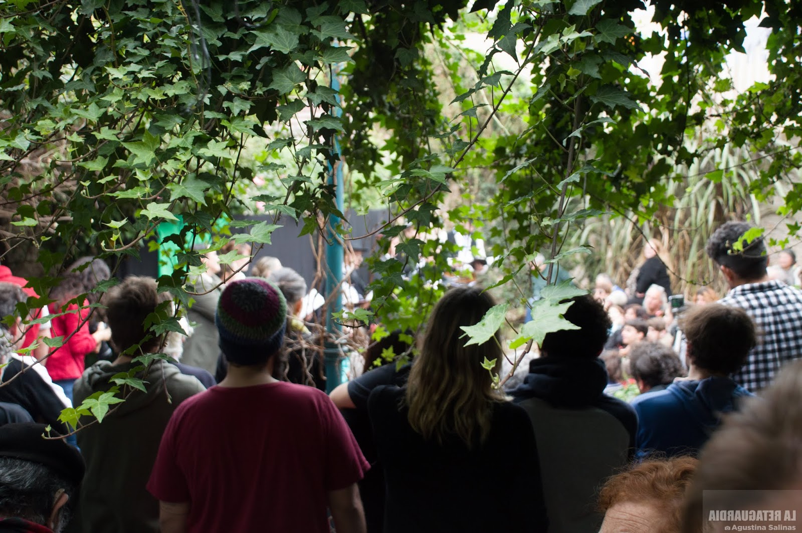 Al locro, finalmente, no le pusimos morrón; al vegano sí. Pero a todo lo que cocinamos en lo que llamamos «la familia Retaguardia”, y a la preparación de nuestra casa/radio, le pusimos mucho amor. El domingo nos lo devolvieron recargado. Hubo demostraciones de afecto y cariño infinitas. Participaron más de 250 personas (entre ellas los anticipados de Avellaneda que no quisieron faltar a la cita correcta), y eso superó nuestras expectativas y la capacidad de los espacios. Nos mirábamos con asombro y decíamos: “¡cuánta gente!”. “Una bocha”, respondíamos con alegría. La fila para conseguir el locro daba una vuelta tan larga que terminaba en el jardín. Tanto el carnívoro como el vegano estuvieron riquísimos, según se comentaba.