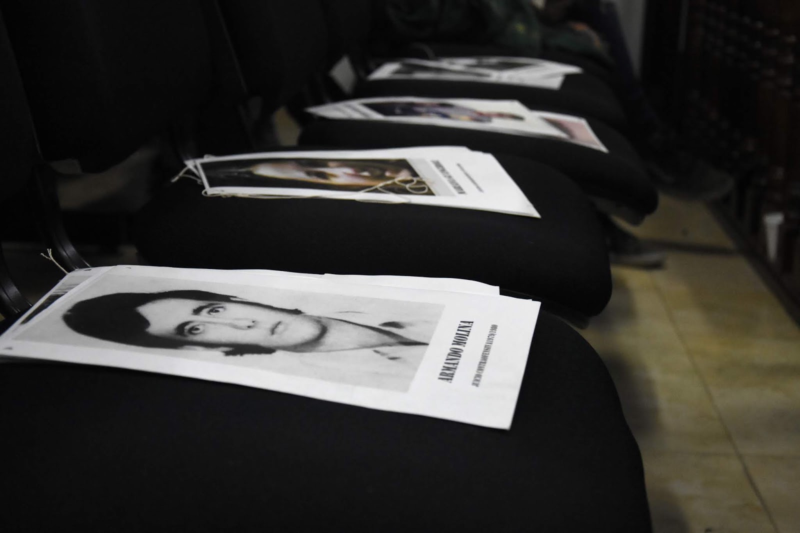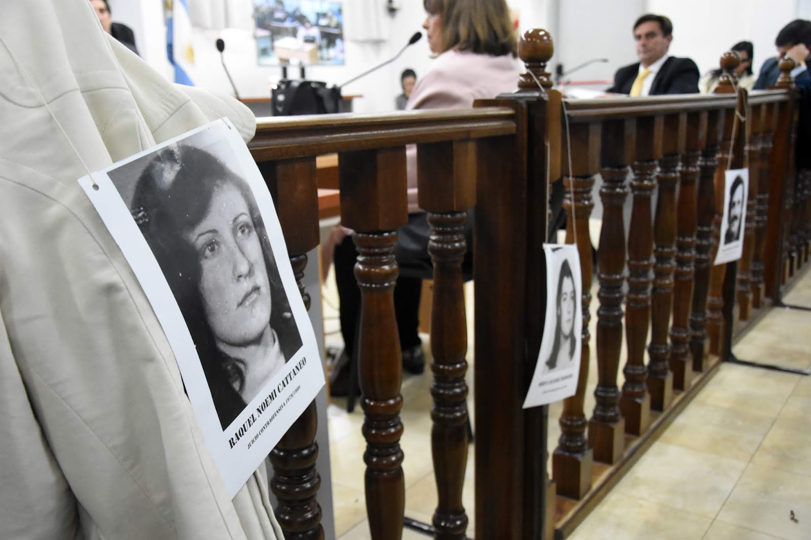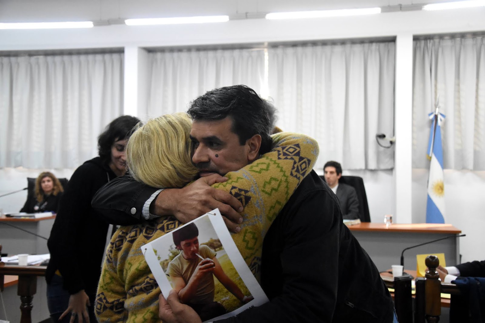 | Los abrazos apenas terminadas las testimoniales aprietan años, carino, compromiso y resistencia. En primer plano queda la foto de Luis Alberto Fleitas. (Fabiana Montenegro/DDJ) |