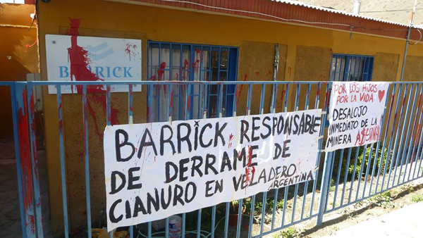 «El Río Jáchal, cuyas nacientes están donde está el proyecto Veladero, en zona de glaciares, es el que toda la vida nos ha dado agua para regadío y agua para potabilizar. Desde dos años después que se inició la mina Veladero a nosotros nos cambiaron la fuente de agua potable. Nos dijeron que el río traía una carga histórica de arsénico y boro, que nos iban a dar mejor calidad y nos conectaron a un acuífero que estaba a 30 kilómetros del casco céntrico de Jáchal. Conectaron sólo el casco céntrico de Jáchal y dejaron a la mitad de la población que vive en las periferias y distintos distritos tomando la misma agua de la cuenca del Jáchal», explicó. «Hoy tiene mucho más arsénico y boro que antes, y también aparece mercurio que no debería tener bajo ningún punto de vista, también aluminio en cantidades bestiales. Ese es el impacto inmediato. Una vez, un juez nos dijo ‘tráiganme un muerto y cierro la mina’. Los muertos no aparecen de un día para otro, a menos que sea una catástrofe muy evidente y peor que la que hemos vivido. Por eso es tan difícil decir que es causado por ese motivo. Sin embargo, la gran mayoría de los ciudadanos de acá mueren de cáncer. En la provincia de San Juan, hay una ley que fue aprobada hace doce años. Es la ley de registro de tumores. No se está aplicando», denunció Jofré. «En Jáchal, por ejemplo, no hay tratamientos oncológicos, así que no existen estadísticas de ningún tipo. Lo vemos como algo sospechoso. Se intenta ocultar de alguna manera. Le pedimos incluso a la comunidad científica, a los médicos, que hablen de esto a nivel provincial. Cuando va alguien enfermo de cáncer a hacerse un tratamiento a San Juan Capital lo miran, y le hacen caras y gestos y a veces se animan algunos médicos a hacer comentarios pero públicamente no dicen nada. Eso es vivir entre la espada y la pared todo el tiempo, pensando qué pasa, qué está pasando con nuestro aire, con los alimentos que comemos, si son regados con agua que está segura. Lo mínimo que provocan este tipo de emprendimientos es la terrible duda de saber si aquel derrame no fue más grande, cuántos fueron en realidad ¿Son una práctica común o fue un accidente?», interpeló Jofré. «Todo ese tipo de dudas, esa división que se genera en la sociedad, está por supuesto provocada desde las mismas esferas del poder porque los gobiernos ceden hasta la función de acción social para que las mineras puedan obtener su licencia social y comprar gente y estar presentes en absolutamente todo. Acá no hay un club que no tenga las camisetas de las mineras, que no le haya hecho los baños, que no le pinte las paredes. Absolutamente dependientes de eso y quebrando otros tipos de economías. Nosotros acá tenemos una historia de alfalfares, trigales, cebollares, ganado, membrillo, que en algún momento significaron que Jáchal fuese un polo agroindustrial. Alguna vez lo fue, pero fue coartada toda posibilidad de que eso se sostenga y agrande. Nos han señalado para eso, para la minera, sin otra alternativa».