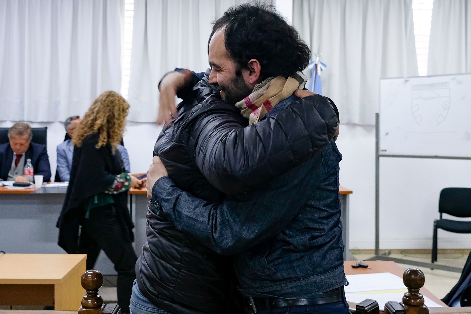 | Guillermo Amarilla Molfino abraza a su hermano Mauricio, luego de que el mayor de los hermanos terminara su declaración. |