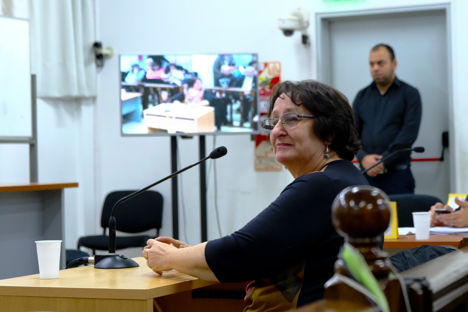 Lazarini continuó con su testimonio, con la particularidad de la silla del juez vacía. Se refirio al secuestro de Antonio Luis Tovo, padre de sus dos hijas, que también viven fuera del país y son querellantes en la causa. (Fernando Tebele/DDJ) |
