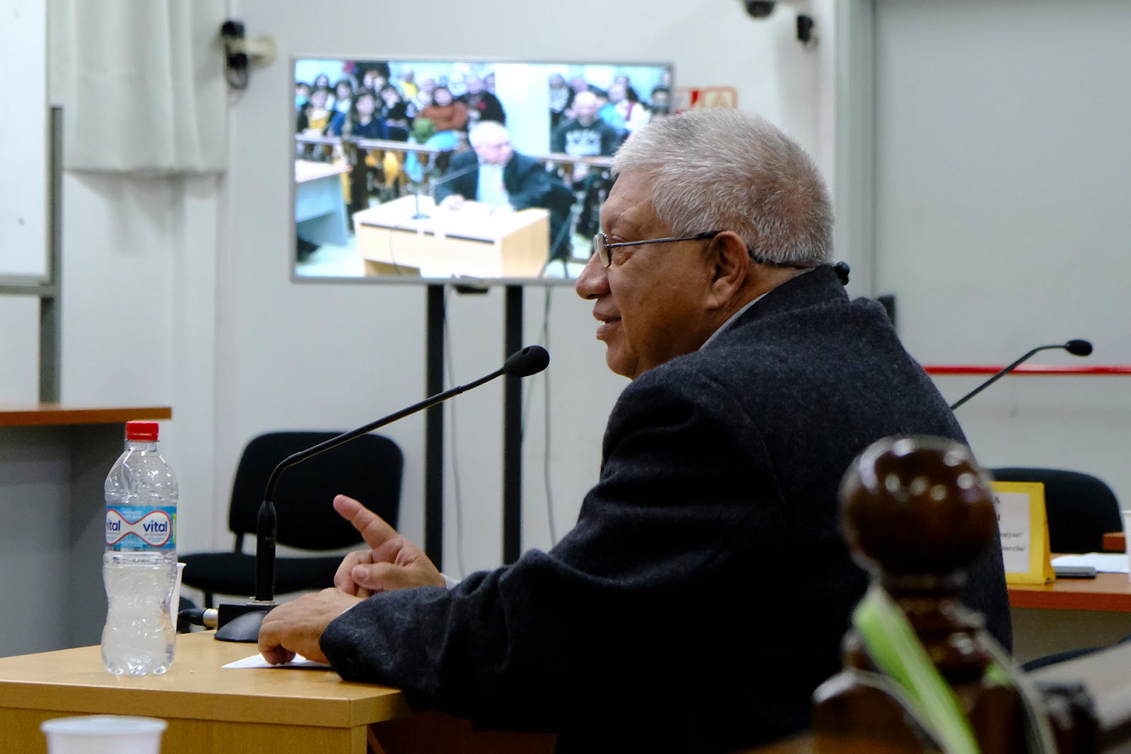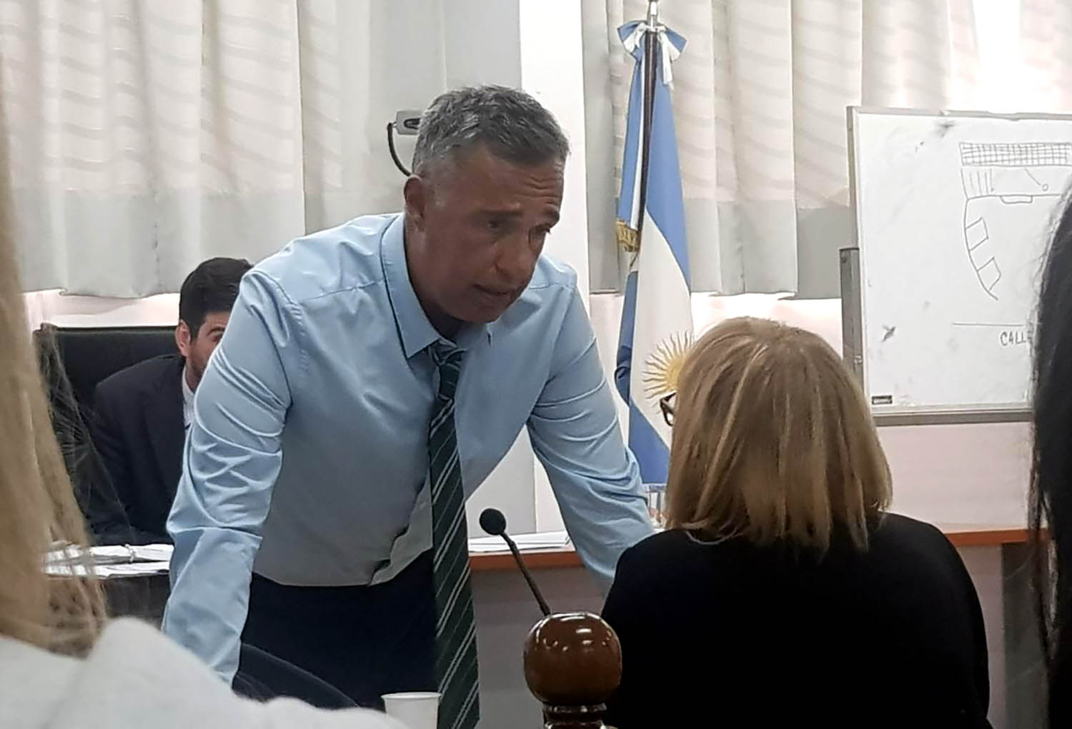 El juez Alejandro de Korvez dijo que se tenía que ir al médico, ya que arrasta un problema en la vista: «de hecho renuncié al juzgado», anunció para sorpresa de todos y todas allí, mientras caminaba hacia la salida. (Gustavo Molfino/DDJ) |