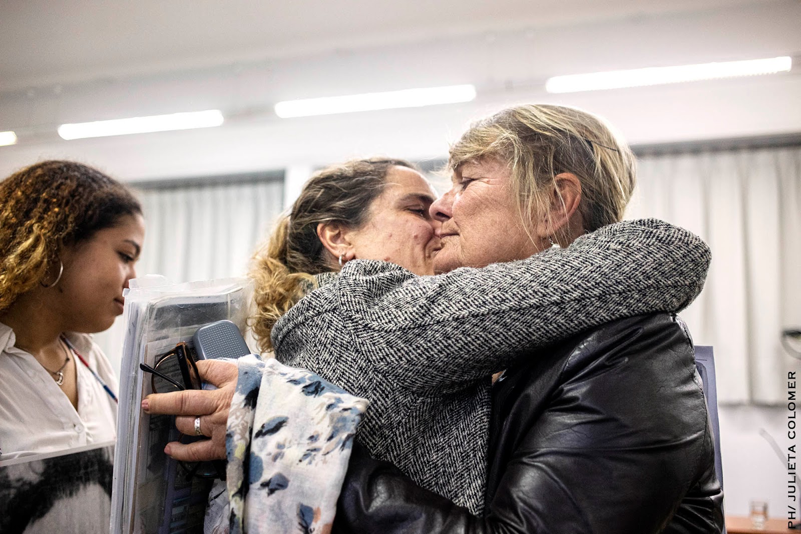 | Cuando finalizó su testimonio, su mamá le devolvió el abrazo anterior. Ambas estaban muy emocionadas. |
