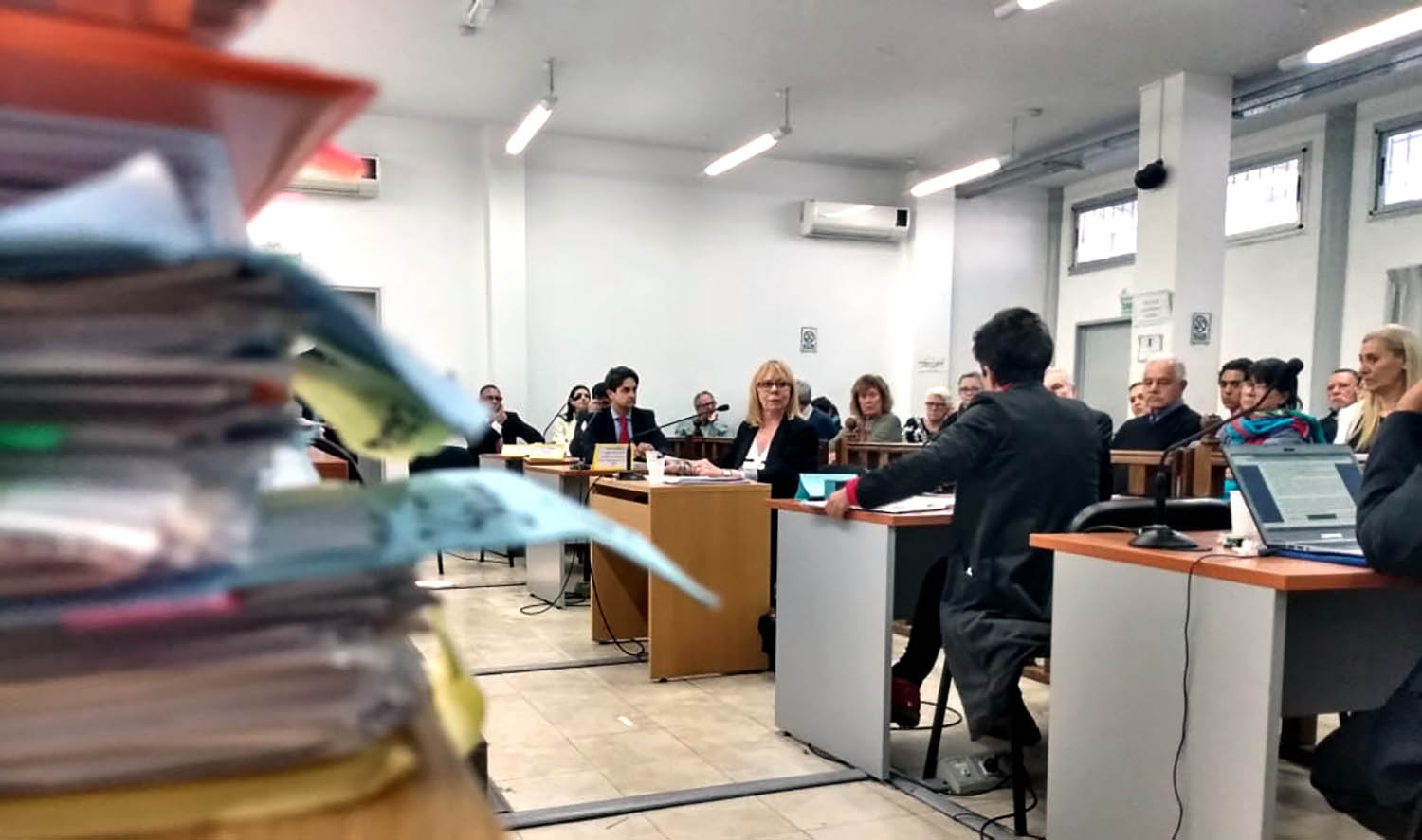 El presidente del tribunal, Esteban Rodríguez Eggers y el otro juez, Matías Mancini, intentaron reparar la situación. Luego de buscar otras variantes de días (la testigo regresa el lunes a Barcelona), le ofrecieron a Lazarini y a las partes que continuara con el relato, sumando a la cuarta jueza para la ocasión. Todas las partes estuvieron de acuerdo en continuar de esa manera. (Grupo de Familiares/DDJ) |
