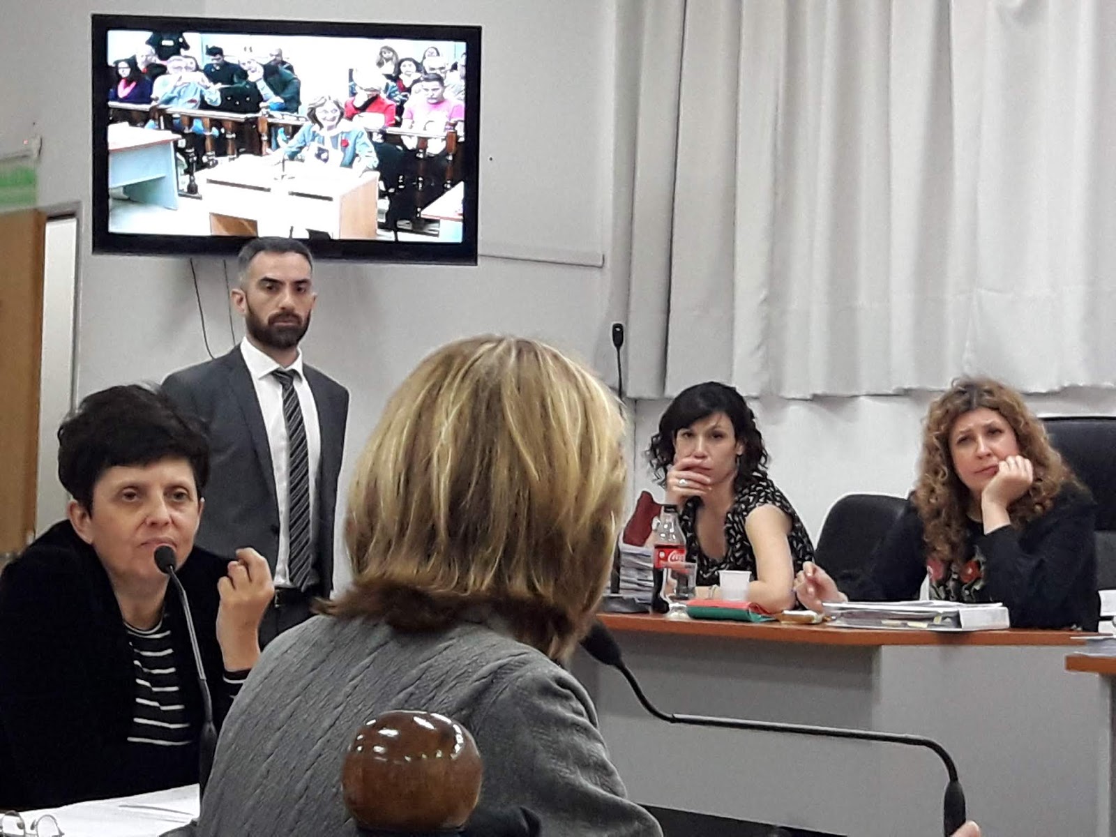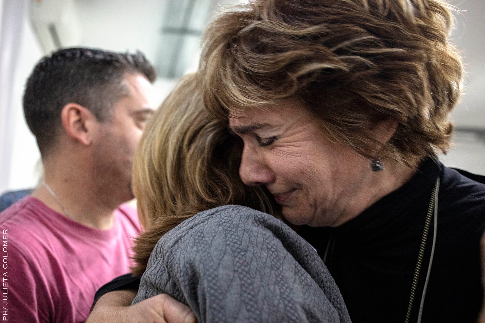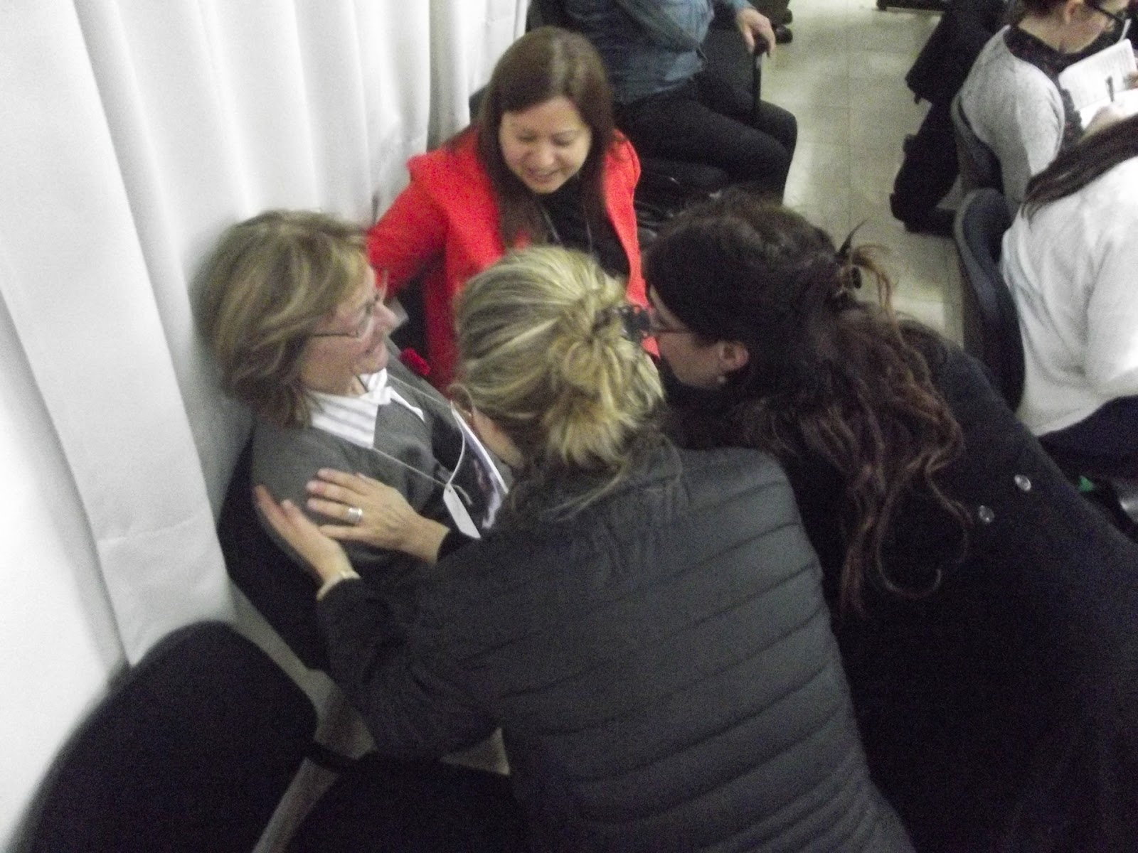 ☝ Apenas sucedido su testimonio, Susana se respaldó con fuerza no sólo sobre la silla, sino, fundamentalmente, en las las caricias de las compañeras.