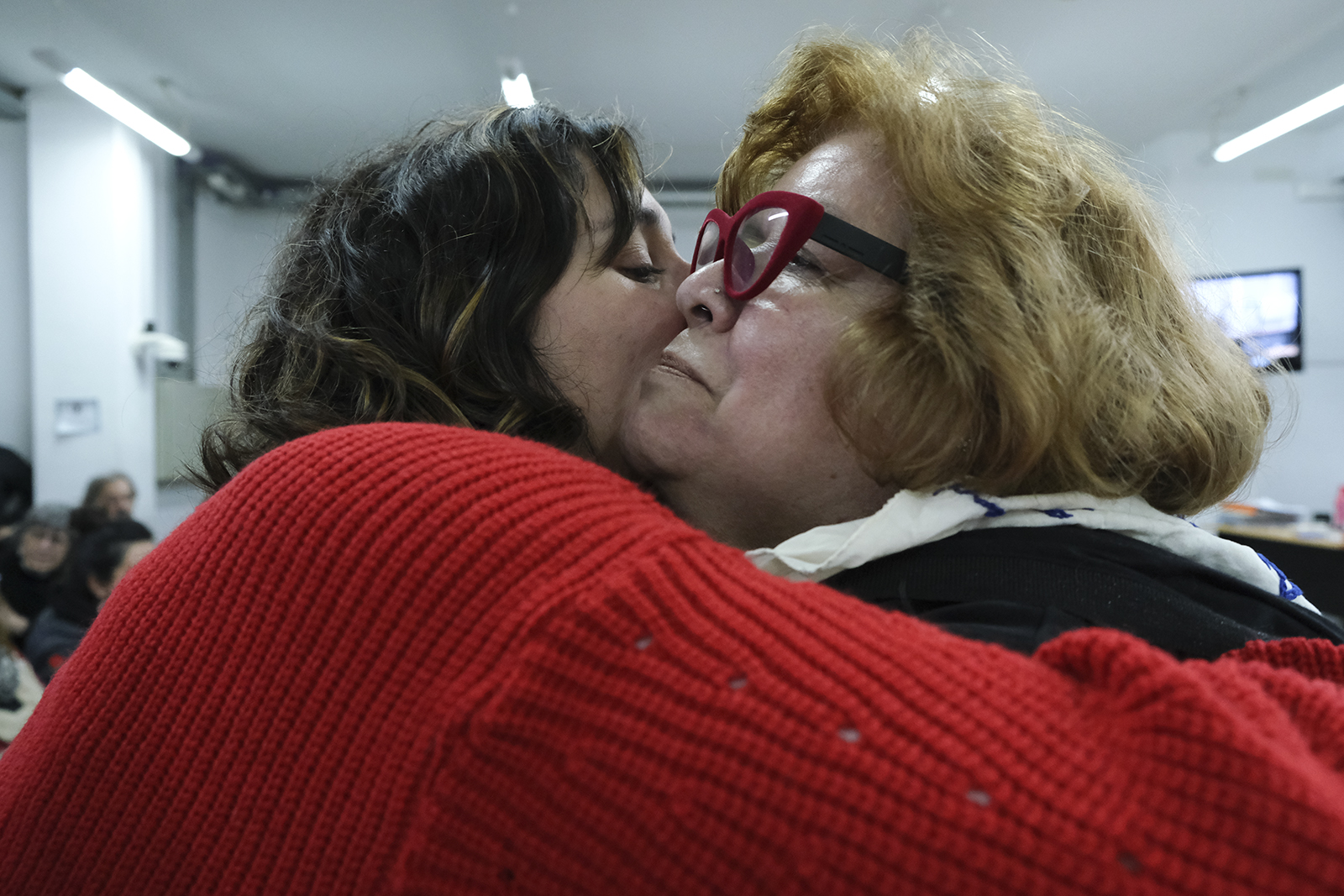 ☝ Olga recibió el abrazo, entre otras personas, de su hija Luz, que habitualmente asiste al juicio.